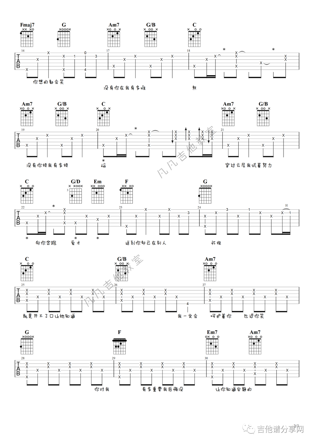 当前位置:琴谱网>吉他弹唱>开不了口
