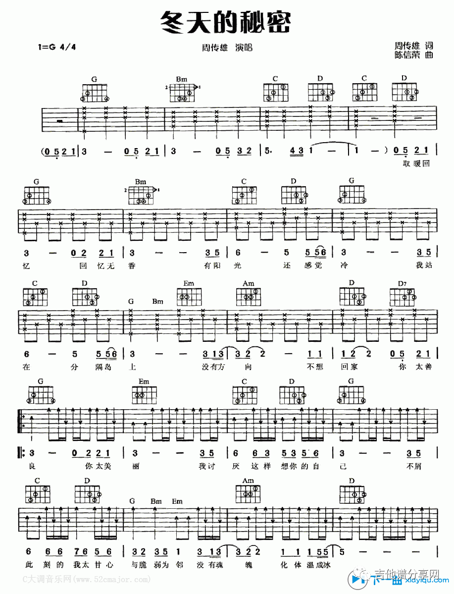 冬天的秘密吉他谱 - 弹唱 - G调吉他弹唱谱