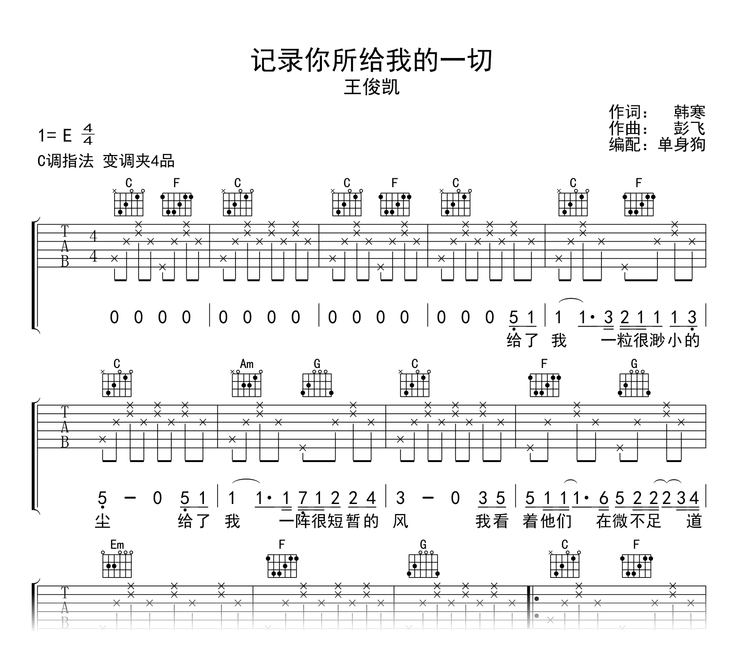 记录你所给我的一切吉他谱 - 王俊凯 - C调吉他弹唱谱