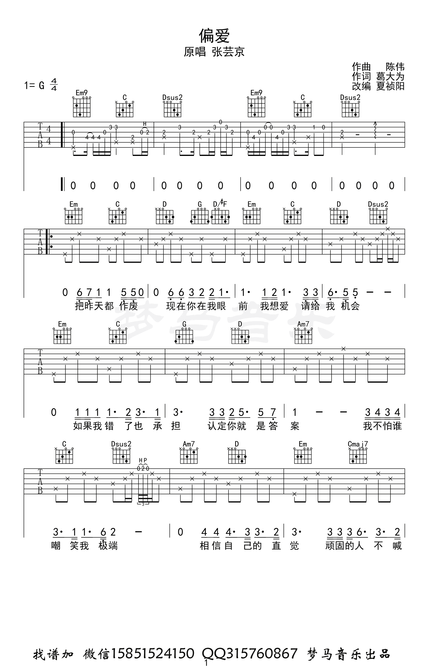 当前位置:琴谱网>吉他弹唱>偏爱