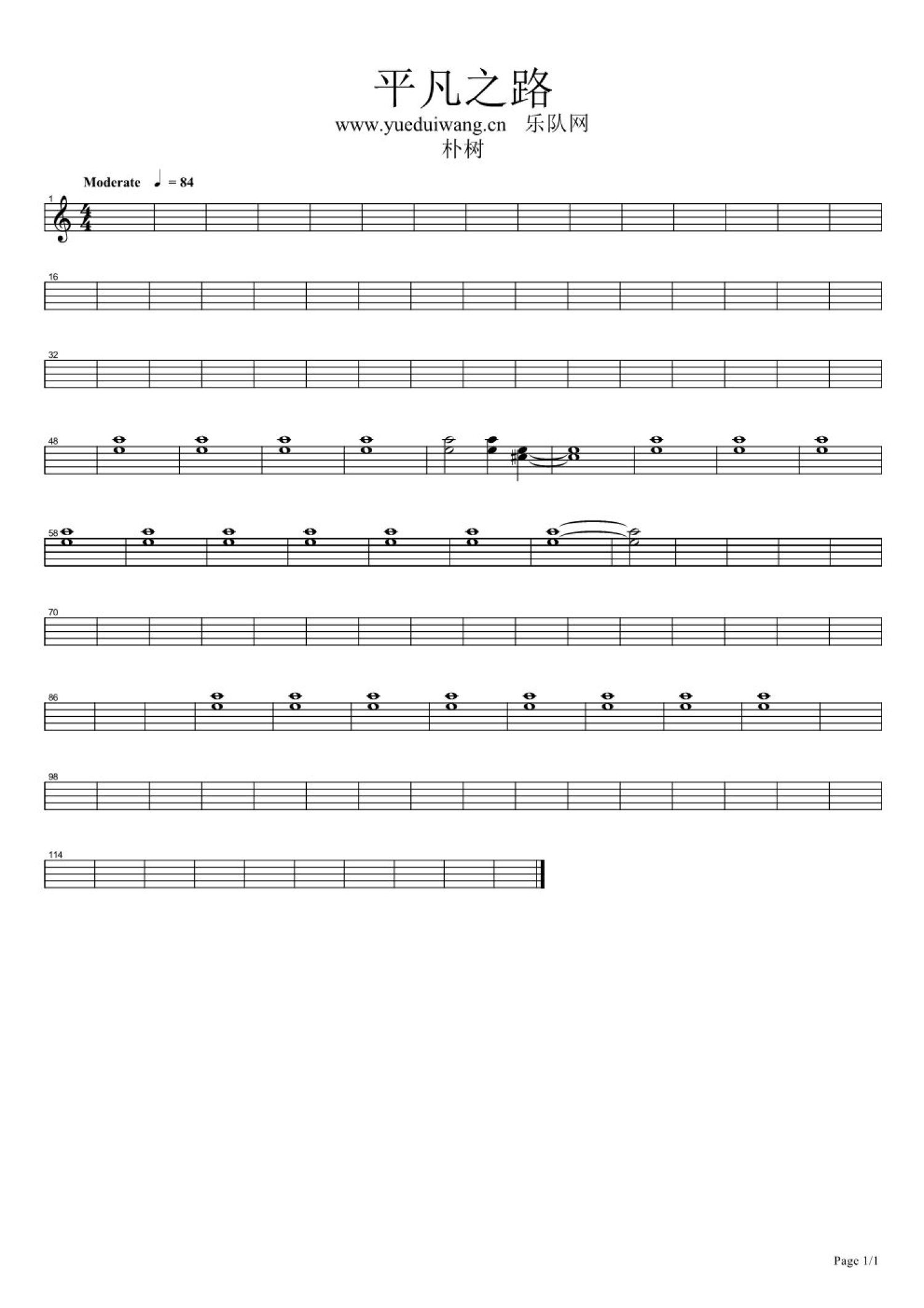 曲谱介绍: 朴树《平凡之路》钢琴谱_键盘谱