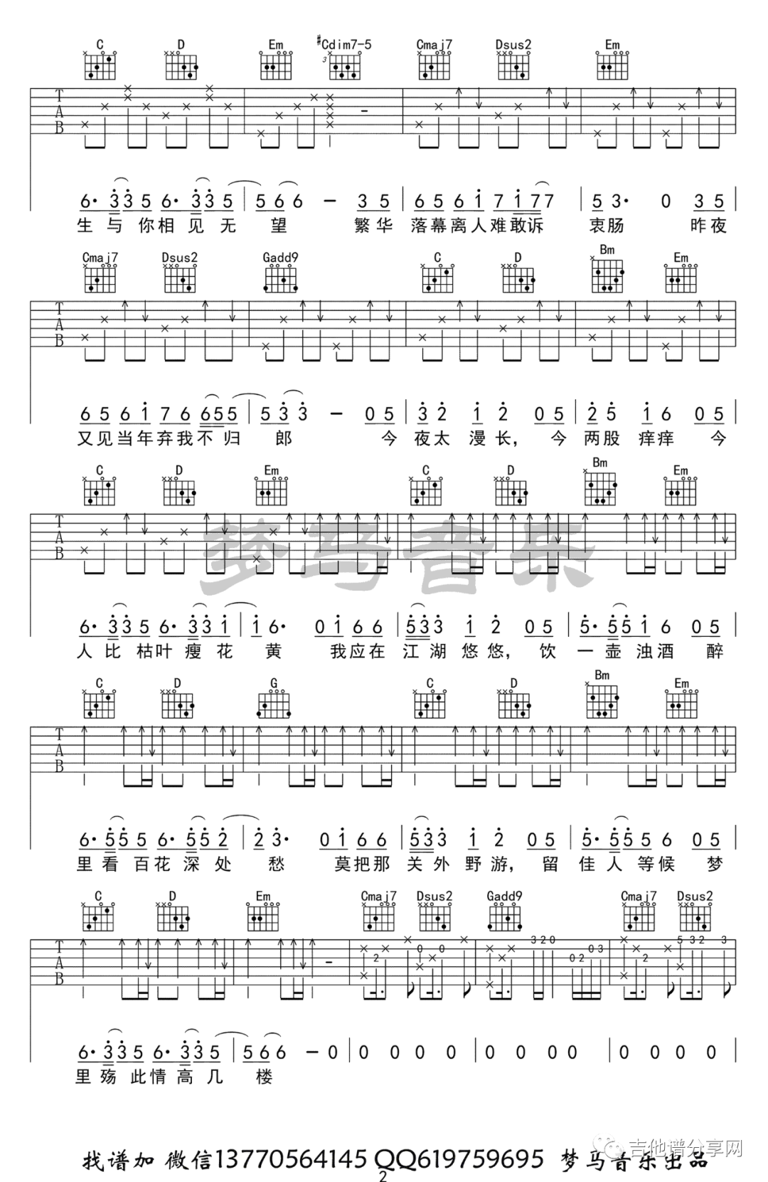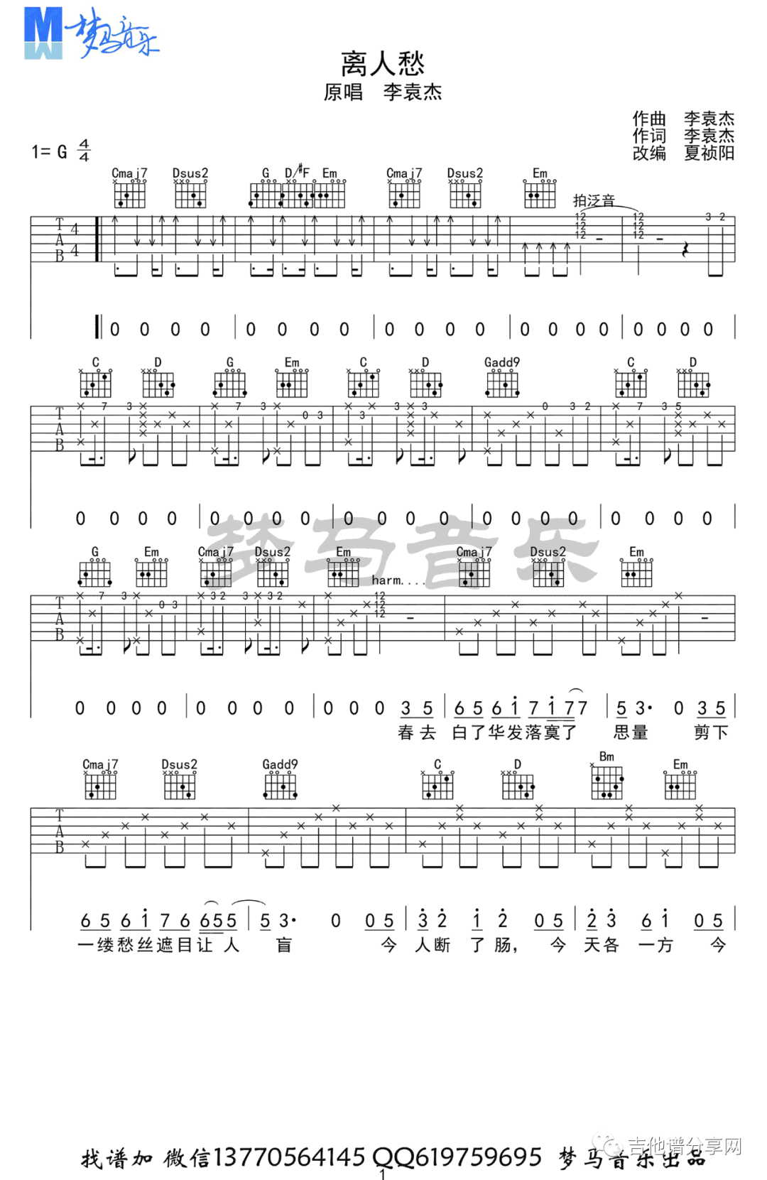离人愁吉他谱 - 弹唱 - G调吉他弹唱谱