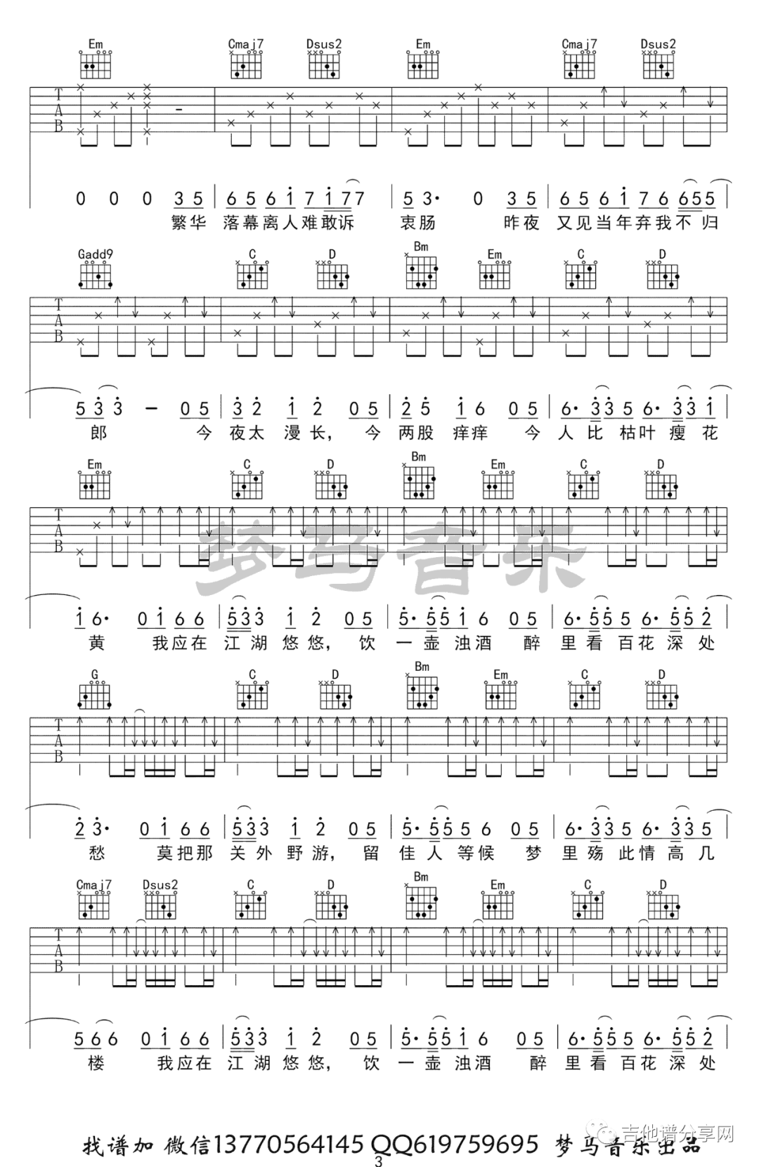 当前位置:琴谱网>吉他弹唱>离人愁