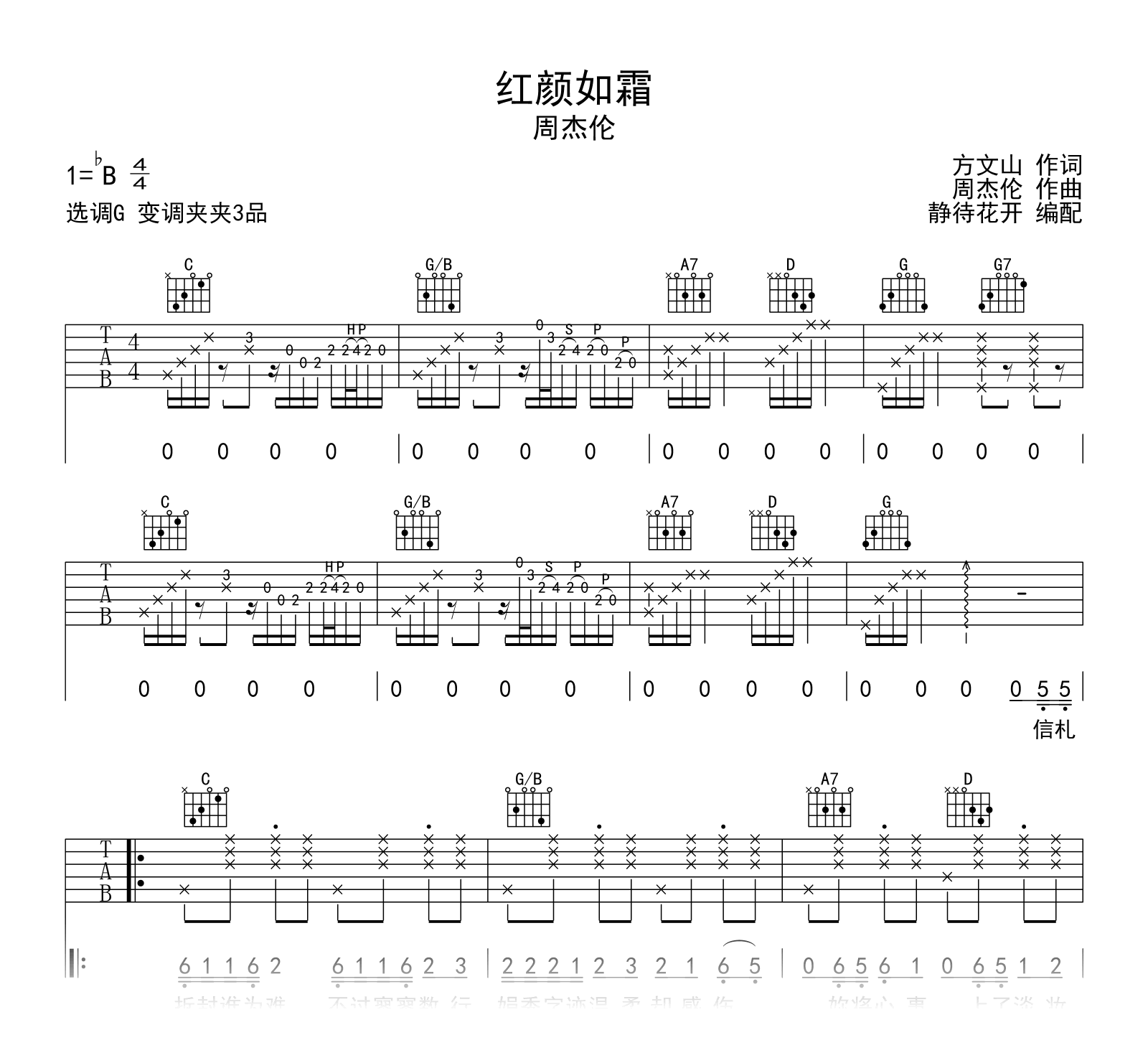 红颜如霜吉他谱 - 周杰伦 - G调吉他弹唱谱