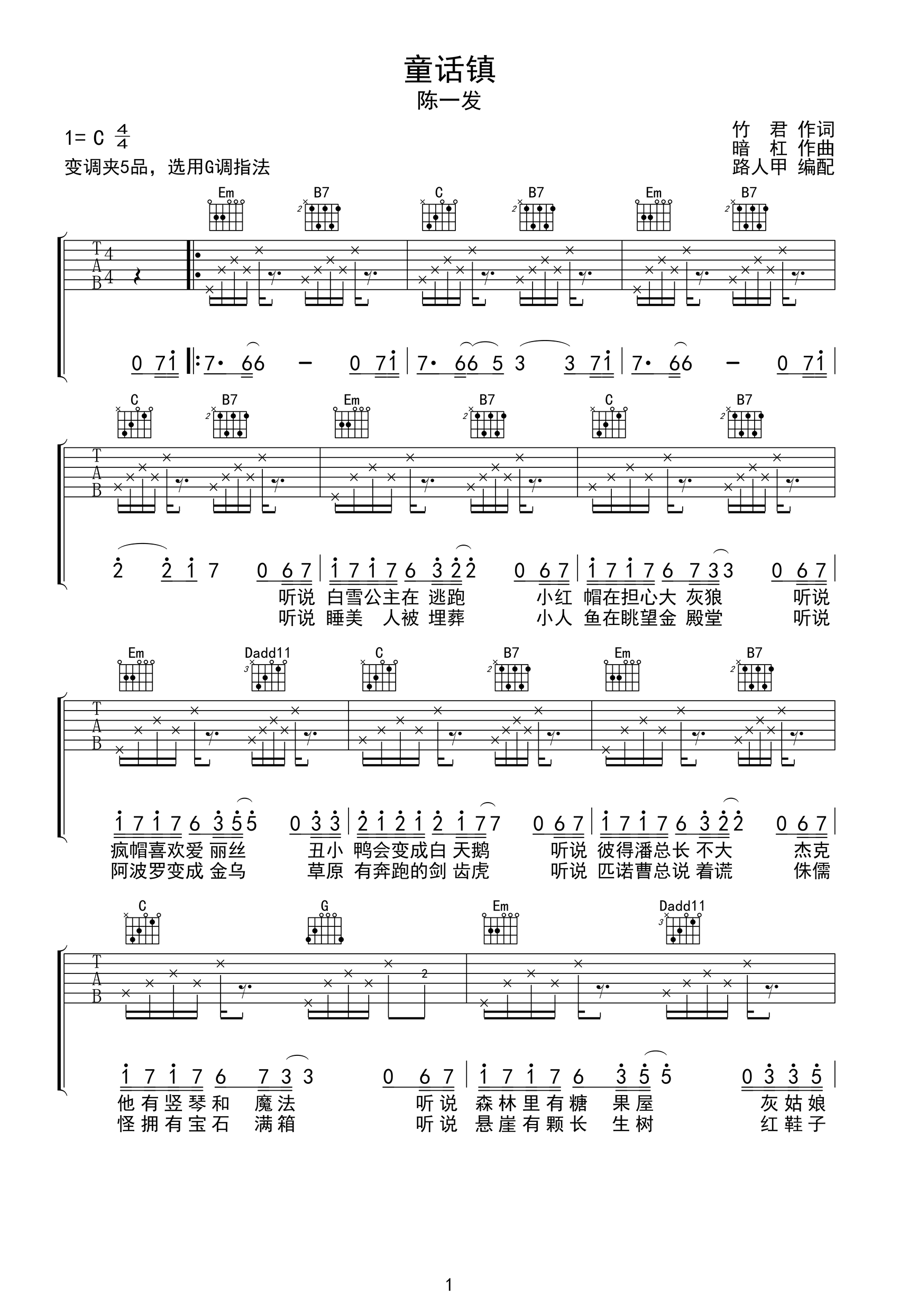 童话镇吉他谱 - 陈一发儿/暗杠 - G调吉他弹唱谱