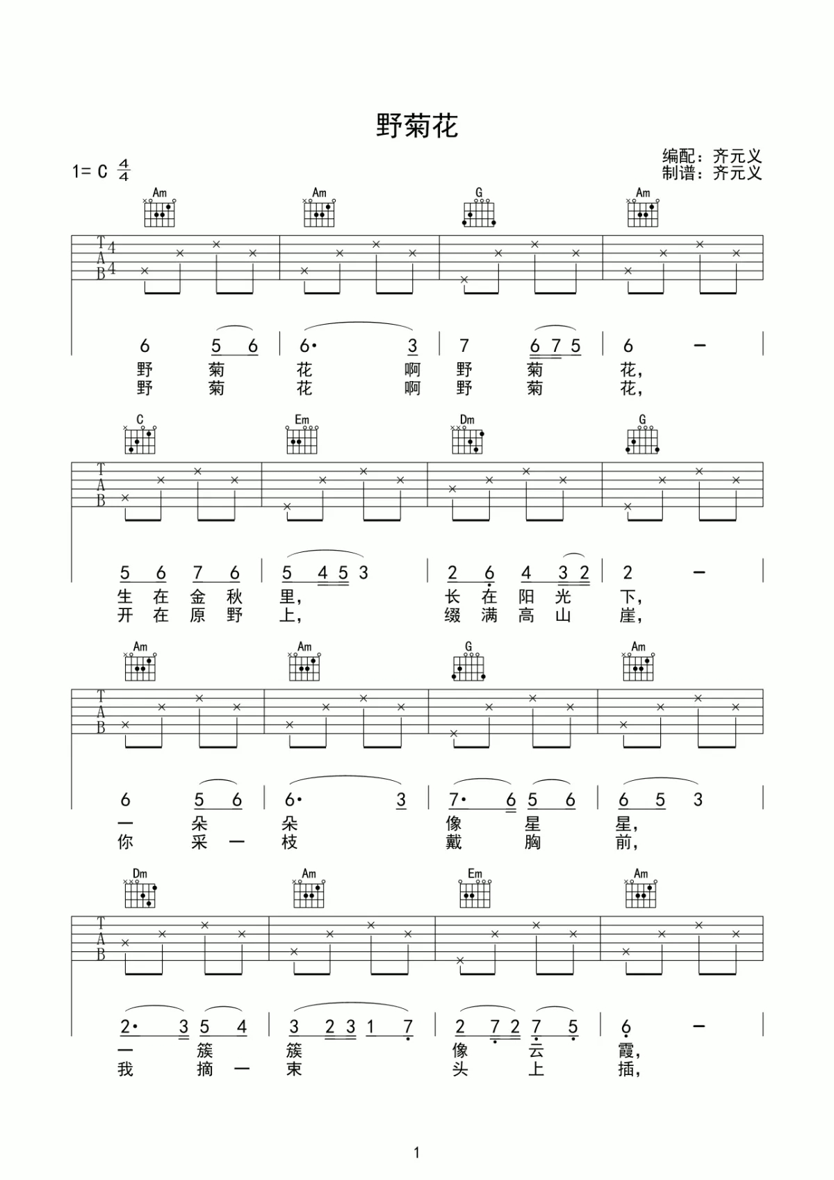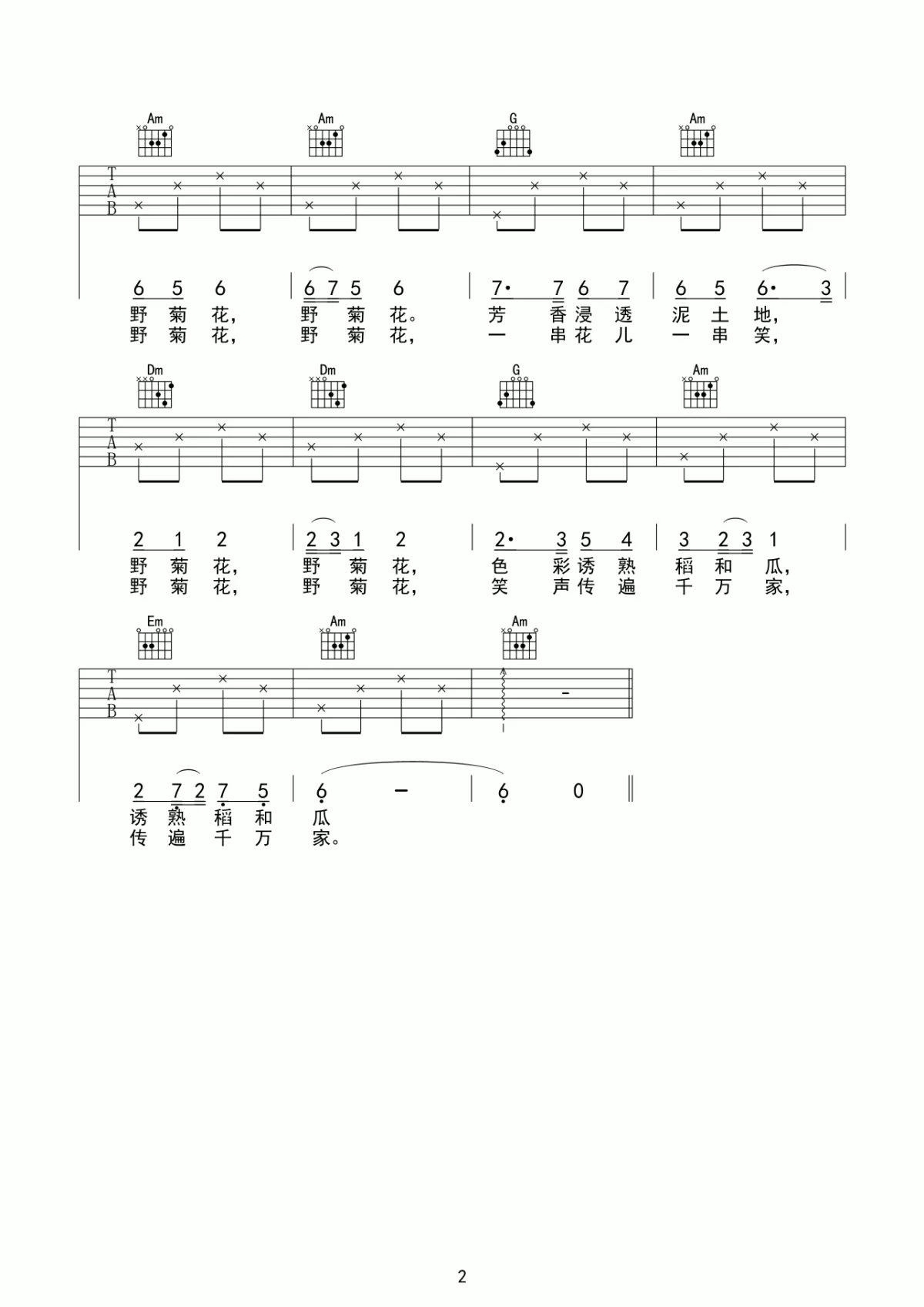 野菊花吉他谱 - 儿歌 - 吉他弹唱谱