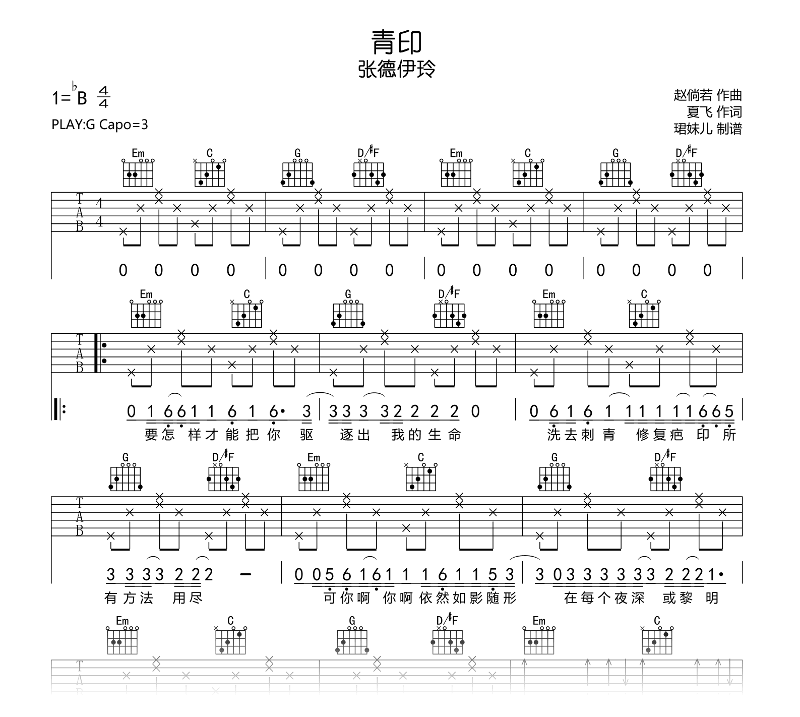 青印吉他谱 - 张德伊玲 - G调吉他弹唱谱