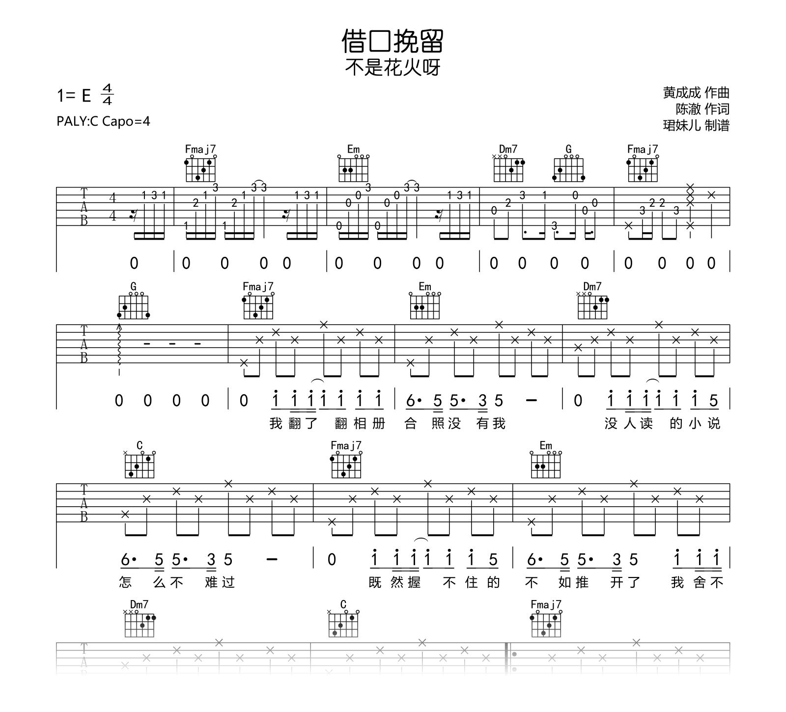 借口挽留吉他谱 - 不是花火呀 - C调吉他弹唱谱