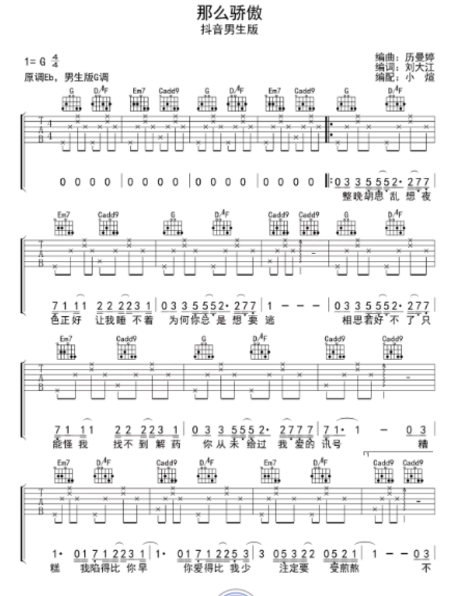 当前位置:琴谱网>吉他弹唱>那么骄傲 抖音版 G调