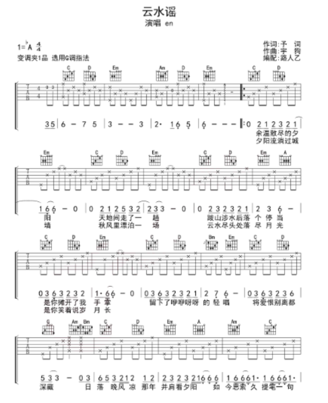 云水谣 en演唱 G调吉他谱 - 云水谣 - G调吉他弹唱谱