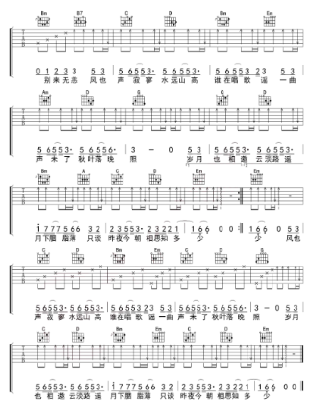当前位置:琴谱网>吉他弹唱>云水谣 en演唱 G调