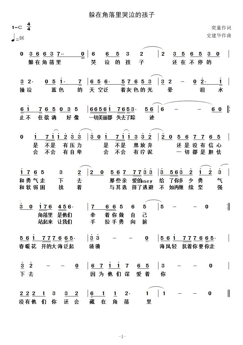 曲谱介绍: 躲在角落里哭泣的孩子,原创歌曲吉他谱。采用C调。这首歌十分不错,大家可以弹着试试