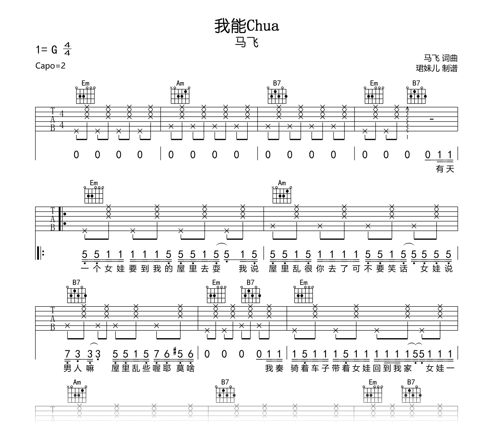 我能Chua吉他谱 - 马飞 - G调吉他弹唱谱