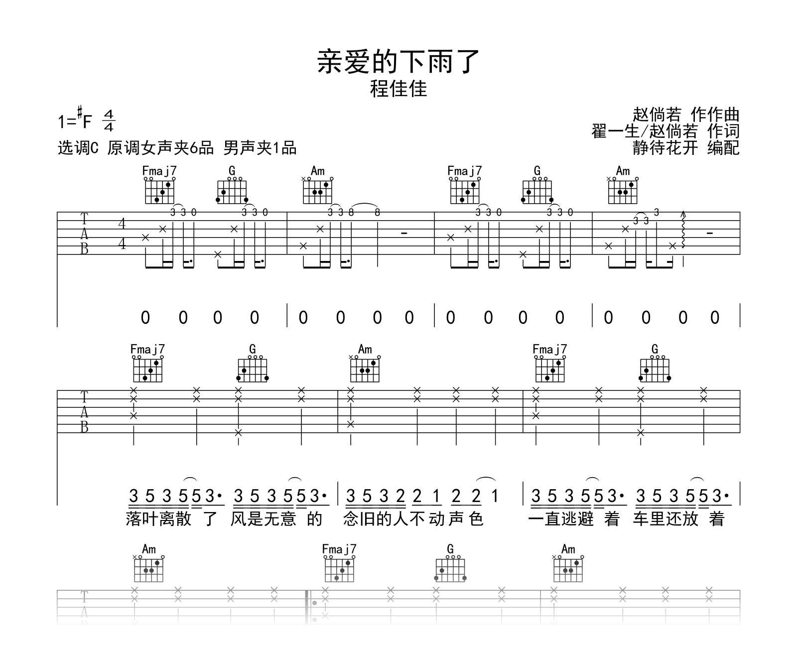 亲爱的下雨了吉他谱 - 程佳佳 - C调吉他弹唱谱