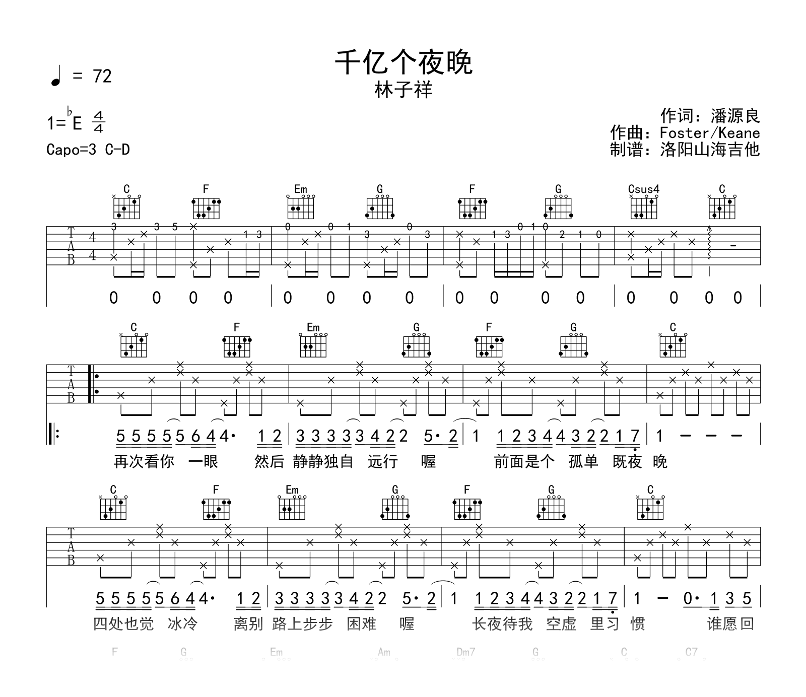 千亿个夜晚吉他谱 - 林子祥 - C调吉他弹唱谱