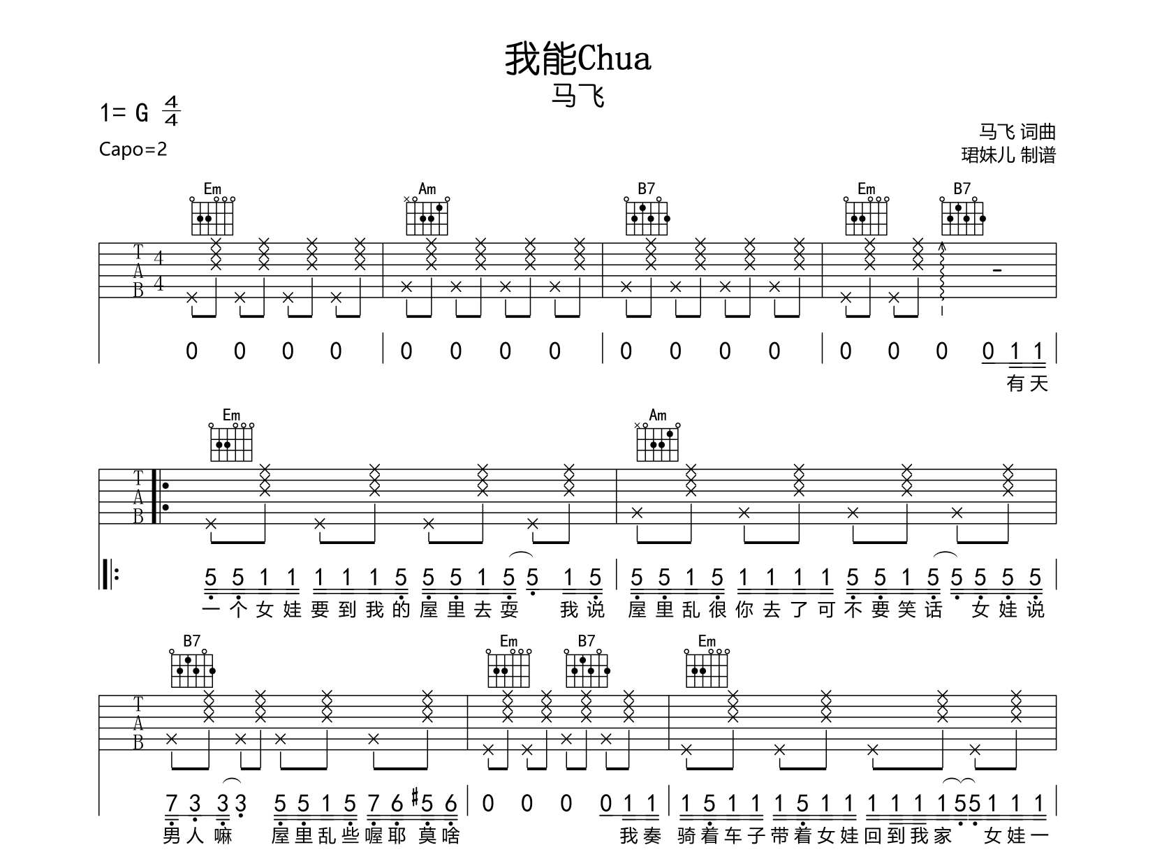 我能Chua吉他谱 - 马飞 - G调吉他弹唱谱 - 原版