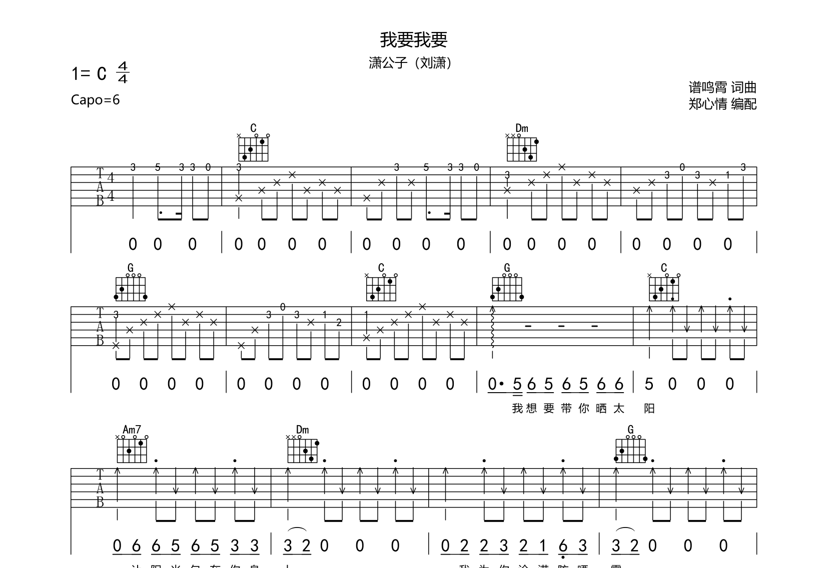我要我要吉他谱 - 潇公子(刘潇) - C调吉他弹唱谱 - 原版