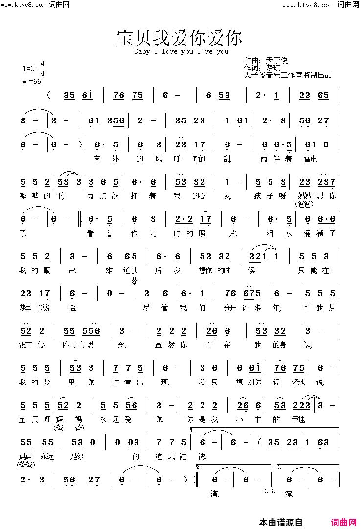 曲谱介绍: Baby I love you love you 宝贝 我爱你 爱你简谱-梦琪演唱-北京梦琪曲谱。很温暖的一首歌,喜欢的朋友可以弹唱。