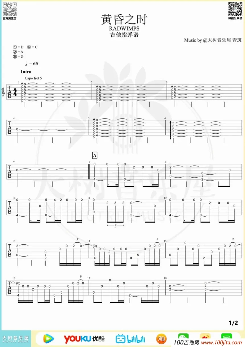黄昏之时吉他谱 - 动漫你的名字插曲 - 吉他独奏谱