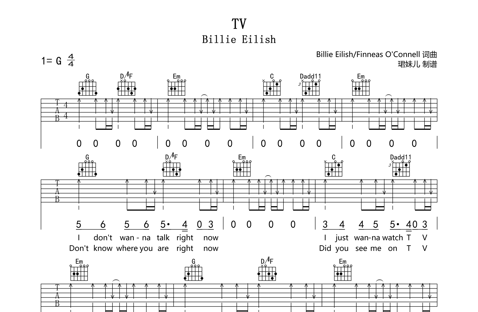 当前位置:琴谱网>吉他弹唱>TV