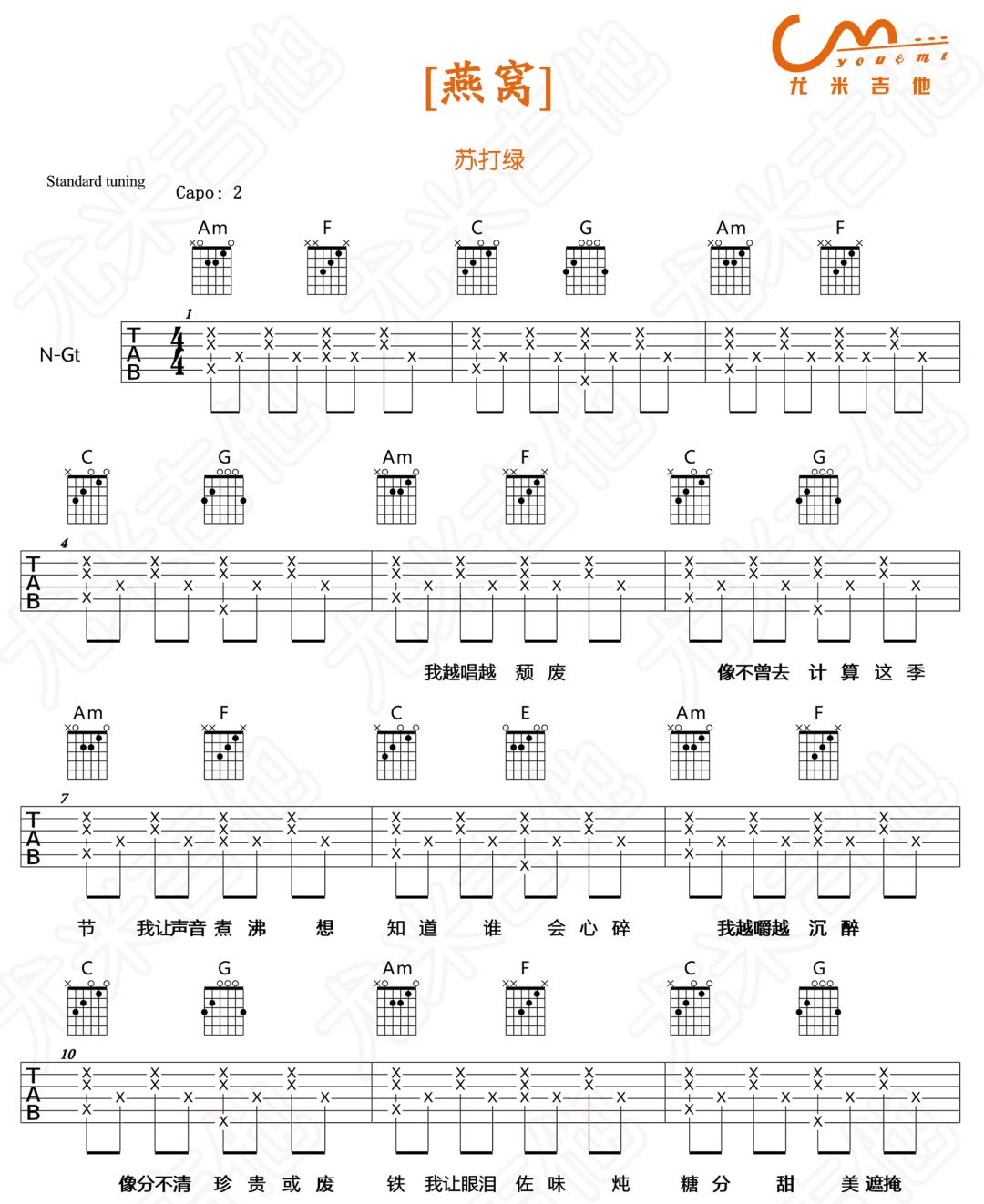 燕窝吉他谱 - 吴青峰 - 吉他弹唱谱