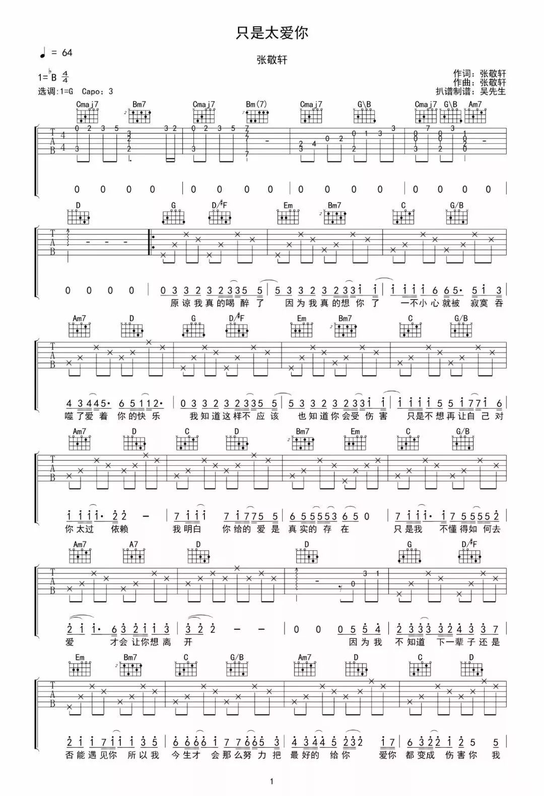 只是太爱你吉他谱 - 张敬轩 - G调吉他弹唱谱 - 原版