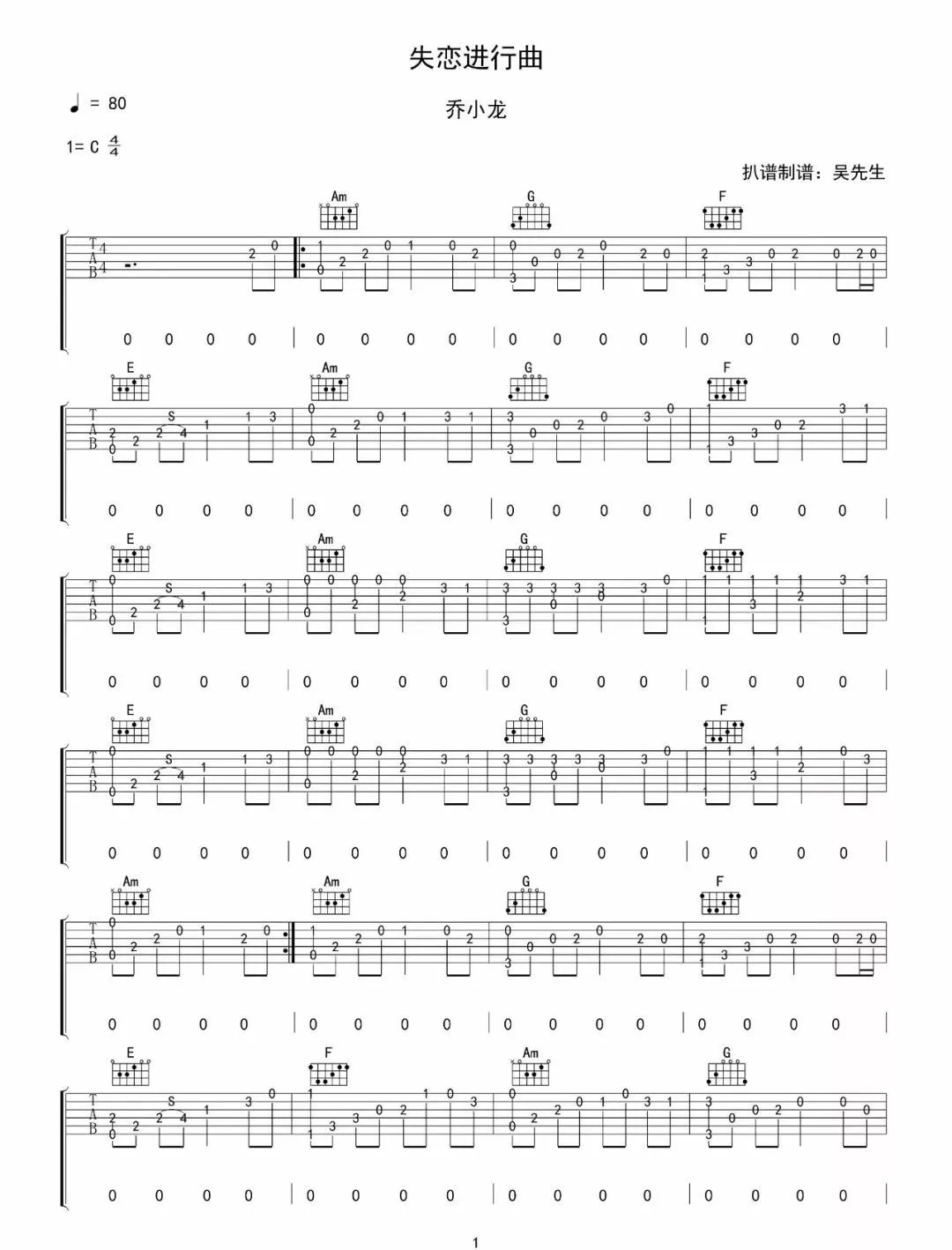 失恋进行曲吉他谱 - 乔小龙 - 吉他独奏谱