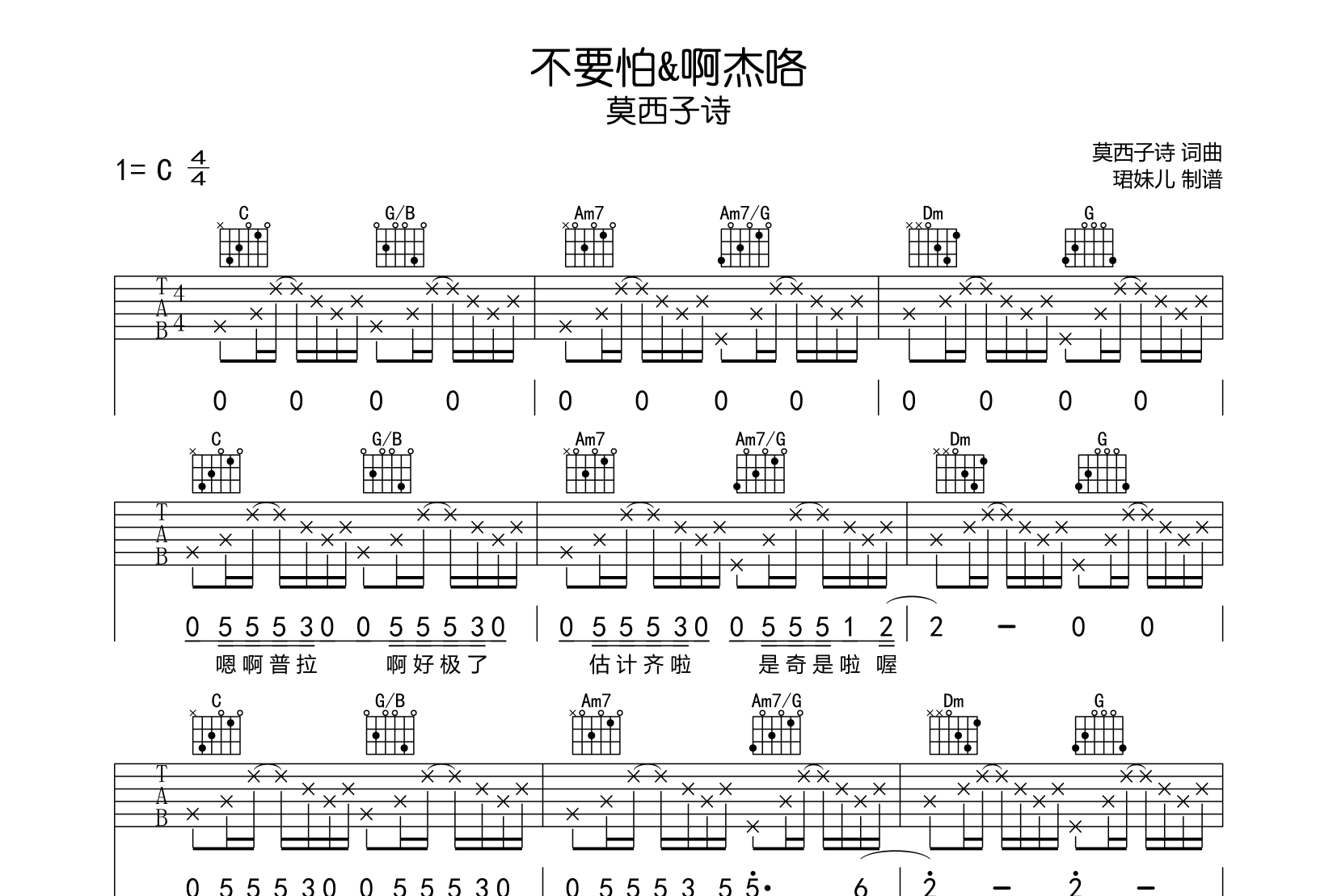 不要怕&啊杰咯吉他谱 - 莫西子诗 - C调吉他弹唱谱