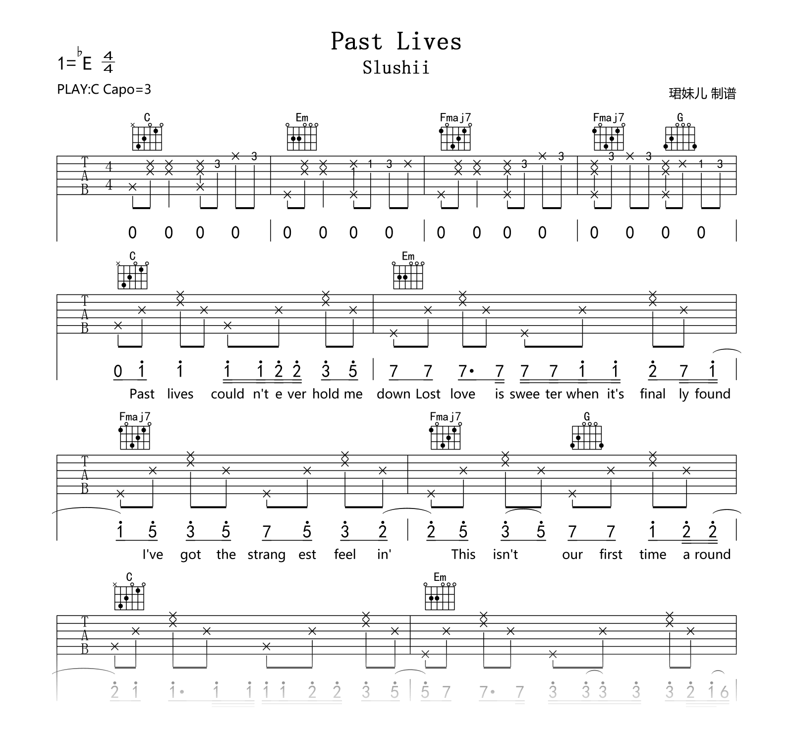Past Lives吉他谱 - Past - C调吉他弹唱谱