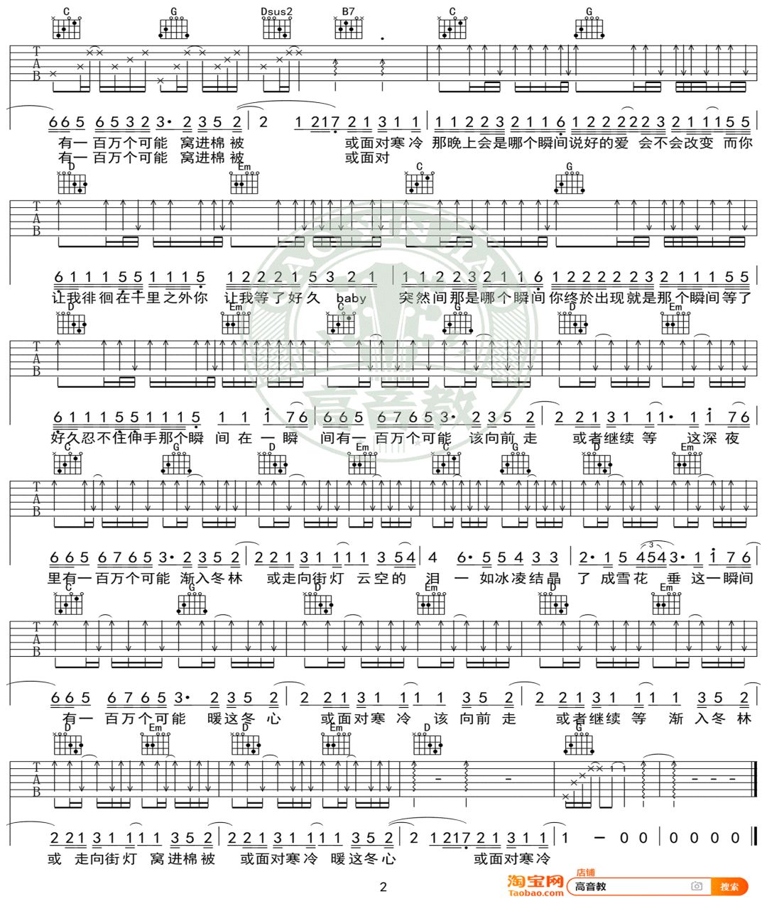 一百万个可能 G调吉他谱 - 一百万个可能 - G调吉他弹唱谱