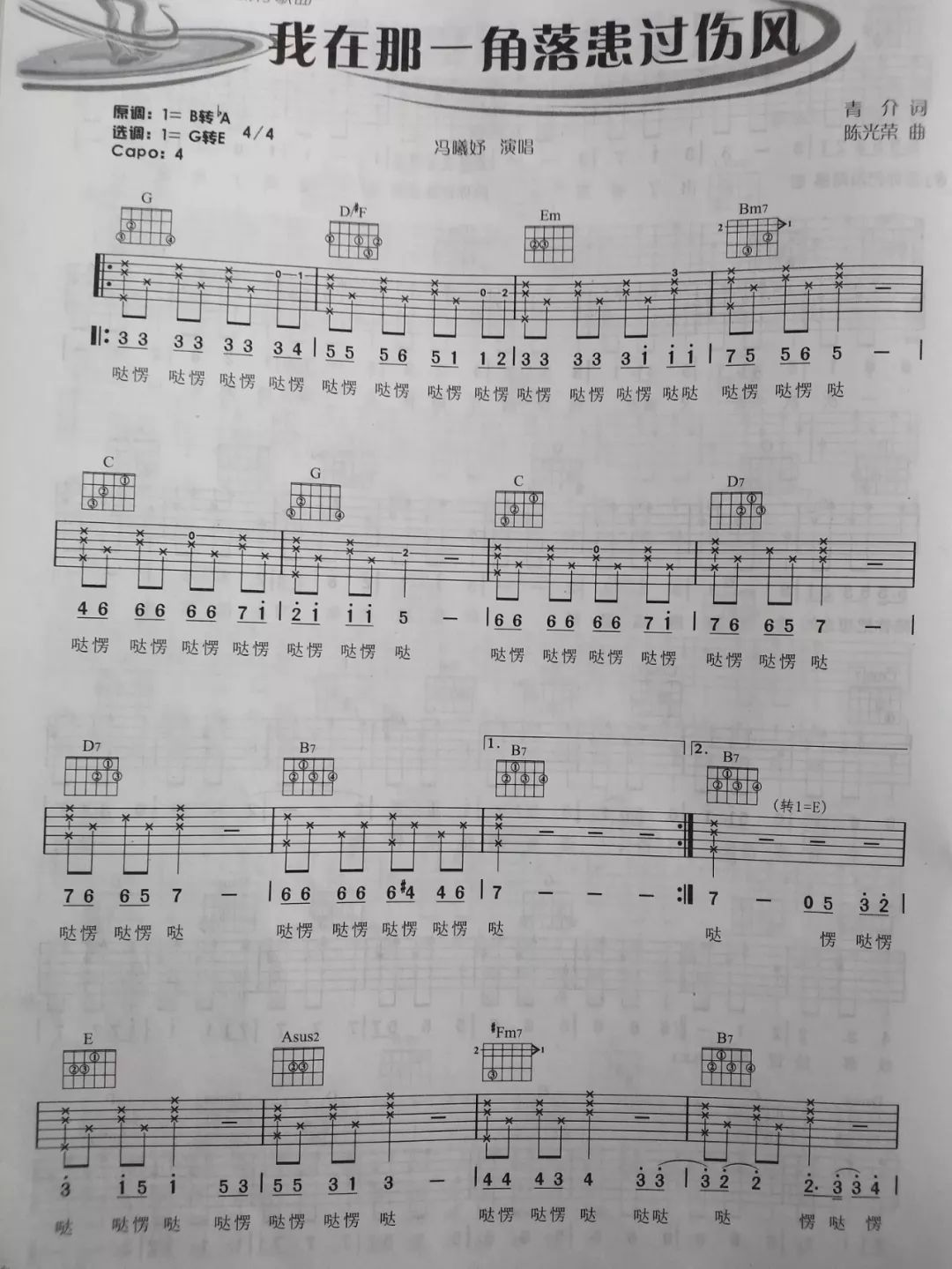 我在那一角落患过伤风吉他谱 - G转E - 吉他弹唱谱