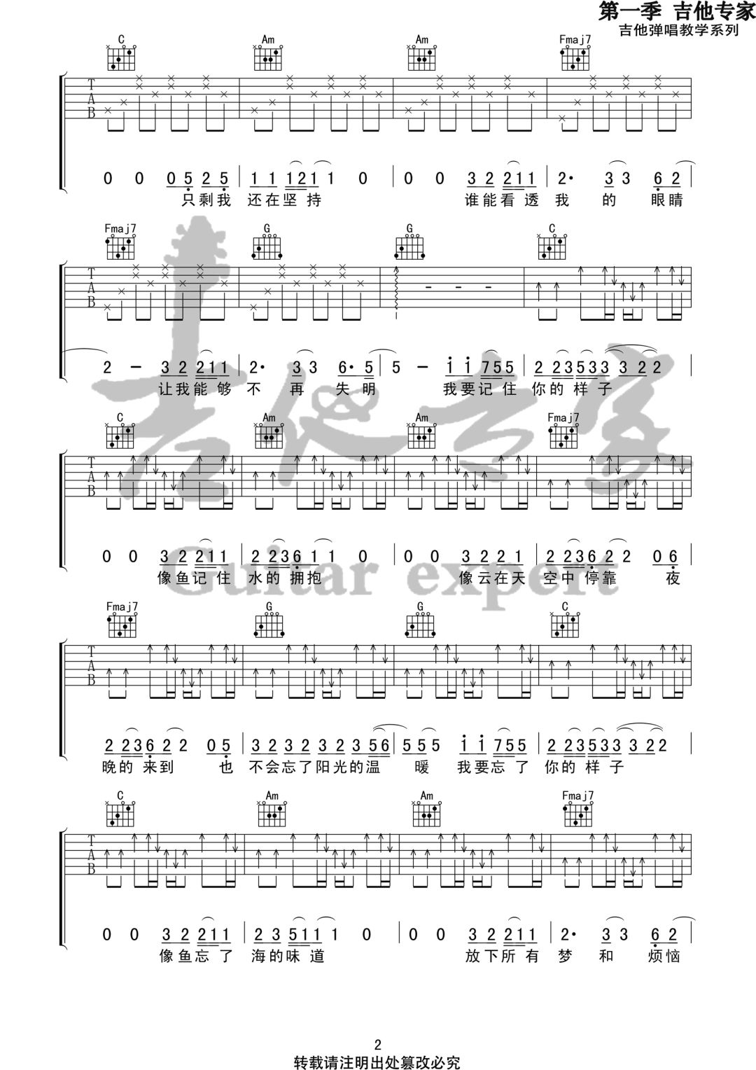 当前位置:琴谱网>吉他弹唱>像鱼 C调