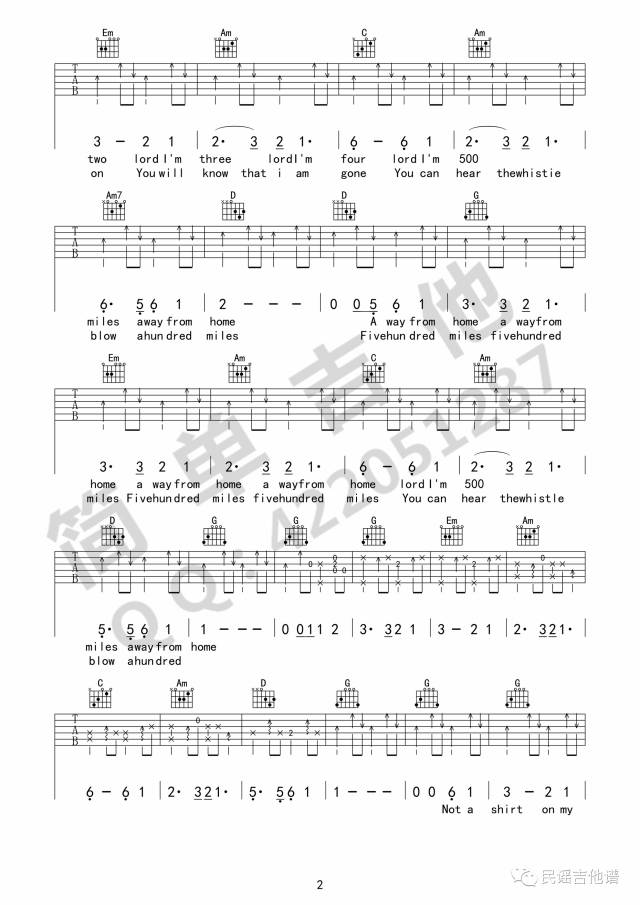 500里 500miles G调吉他谱 - 500里 - G调吉他弹唱谱