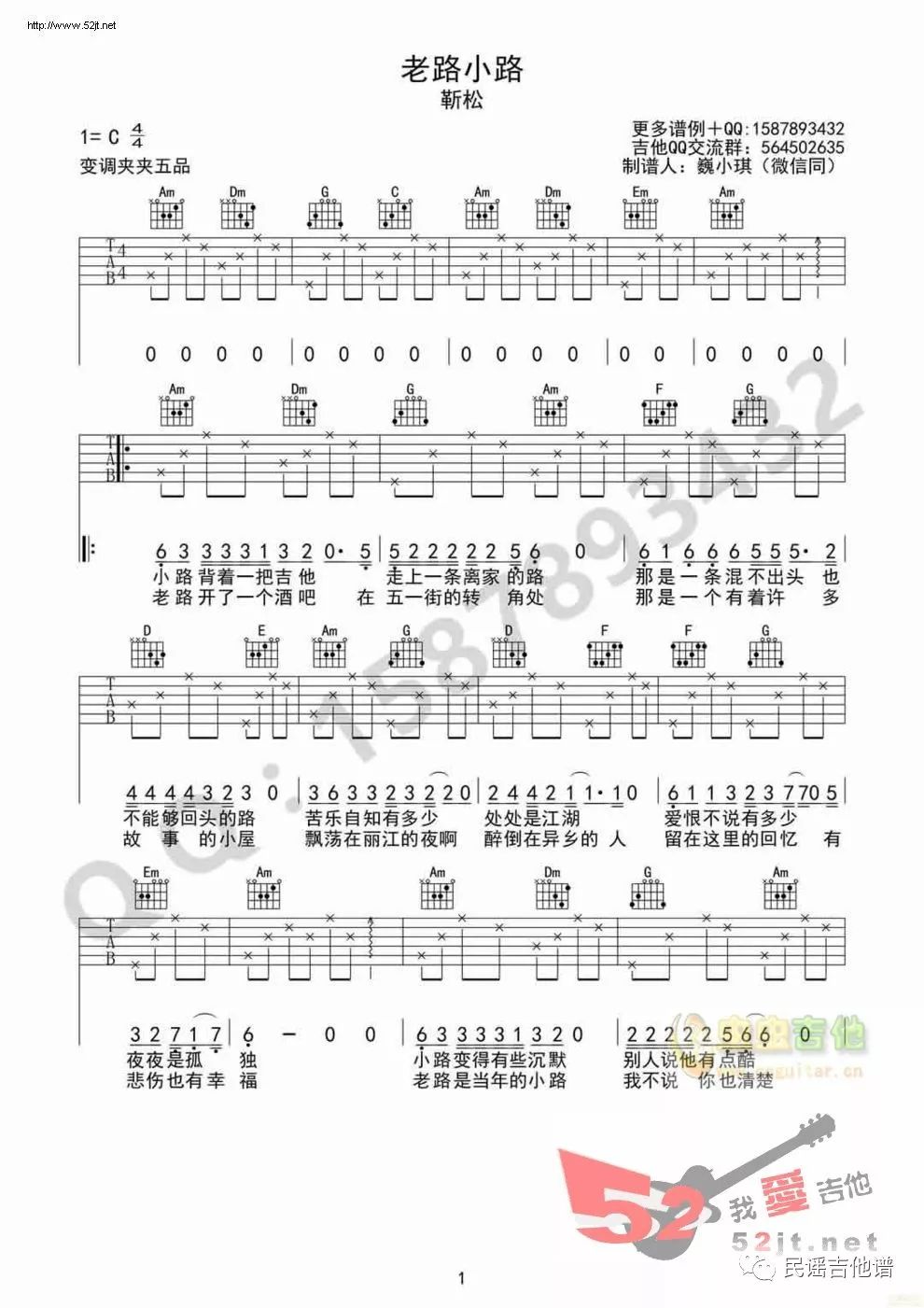 当前位置:琴谱网>吉他弹唱>老路小路 靳松 C调