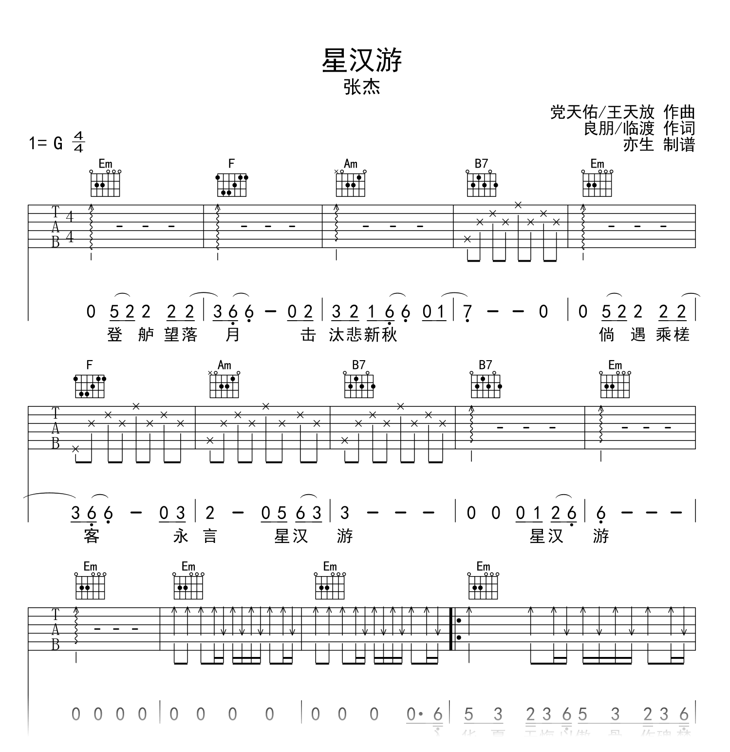 星汉游吉他谱 - 张杰 - G调吉他弹唱谱