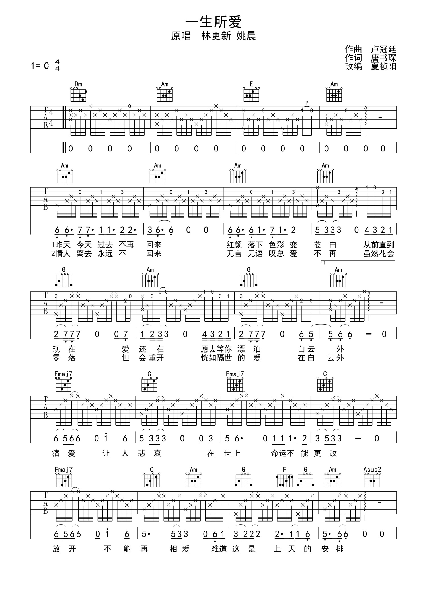 • 一生所爱吉他谱 - 林更新/姚晨 - C调吉他弹唱谱 - 《大话西游》主题曲第1张