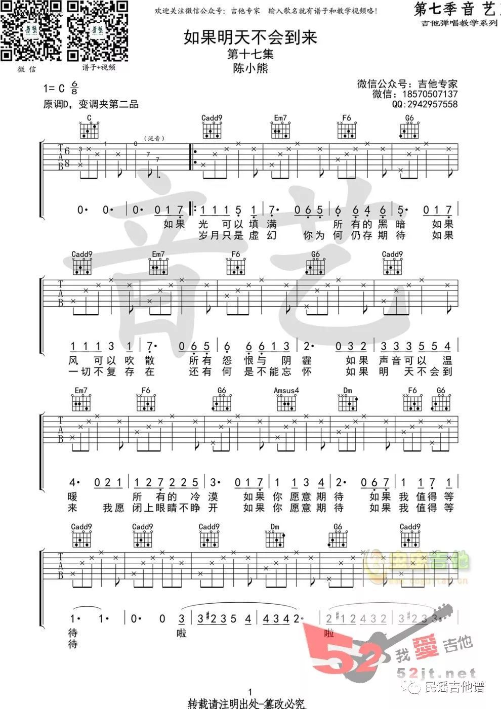 如果明天不会到来 C调吉他谱 - 如果明天不会到来 - C调吉他弹唱谱