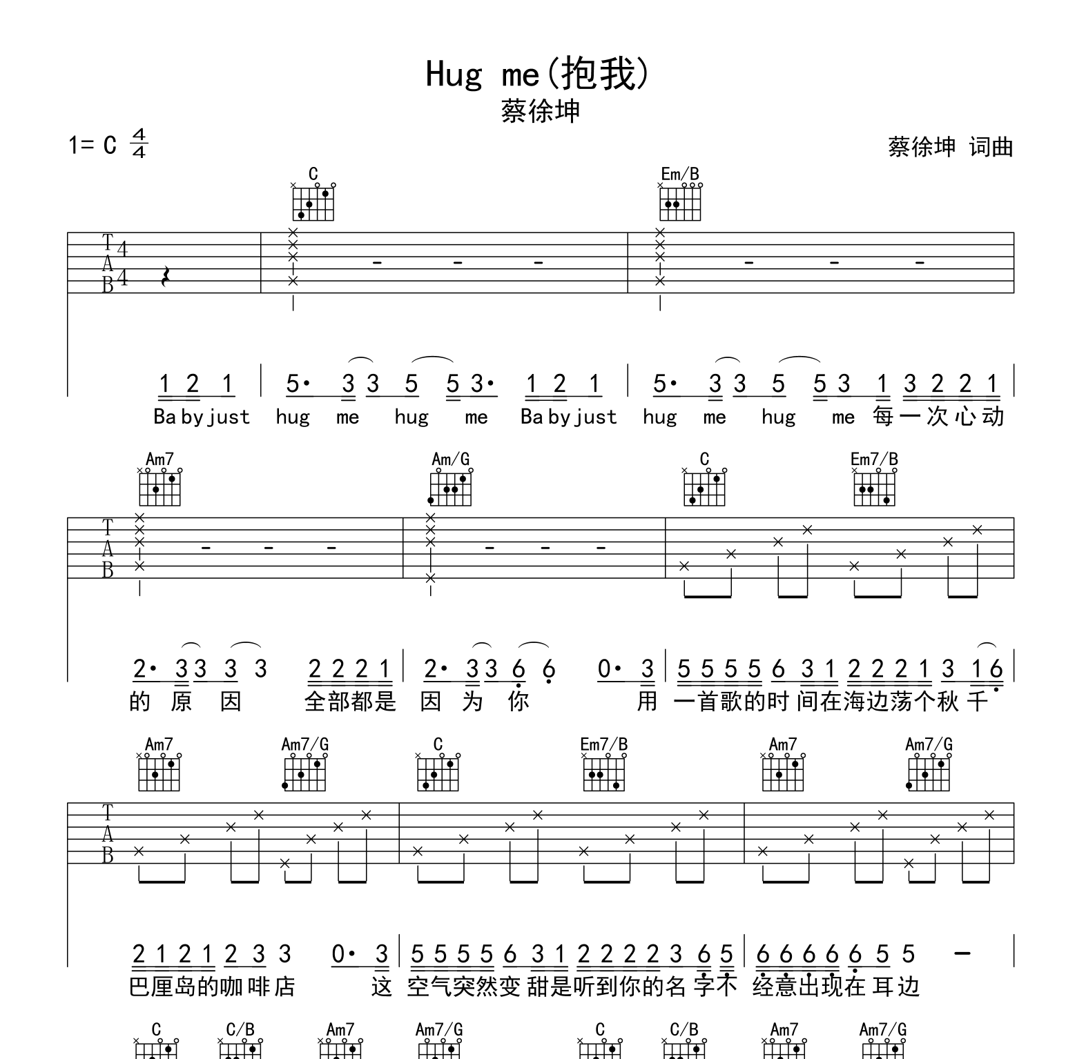 hug me吉他谱 - hug - C调吉他弹唱谱