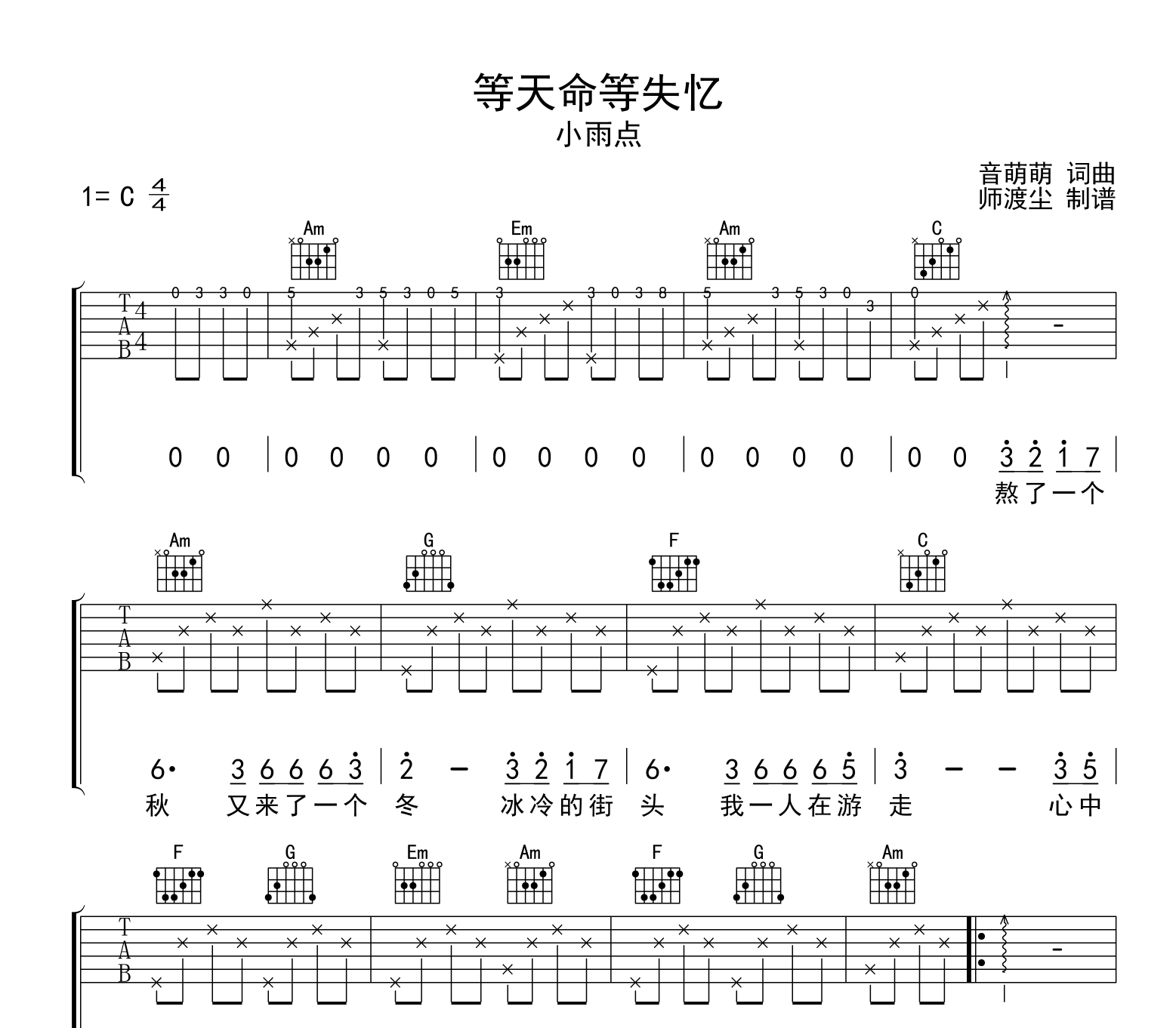 等天明等失忆吉他谱 - 小雨点 - C调吉他弹唱谱