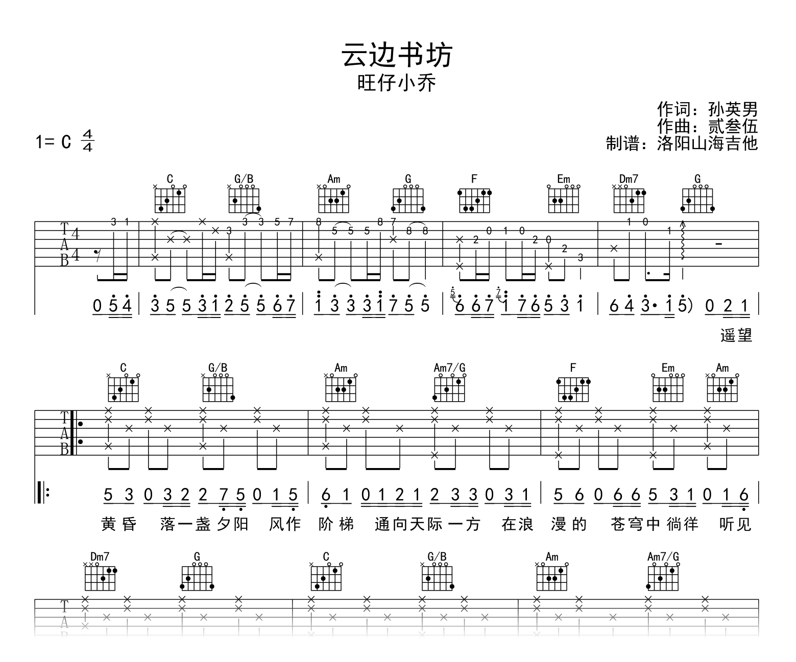 云边书坊吉他谱 - 旺仔小乔 - C调吉他弹唱谱
