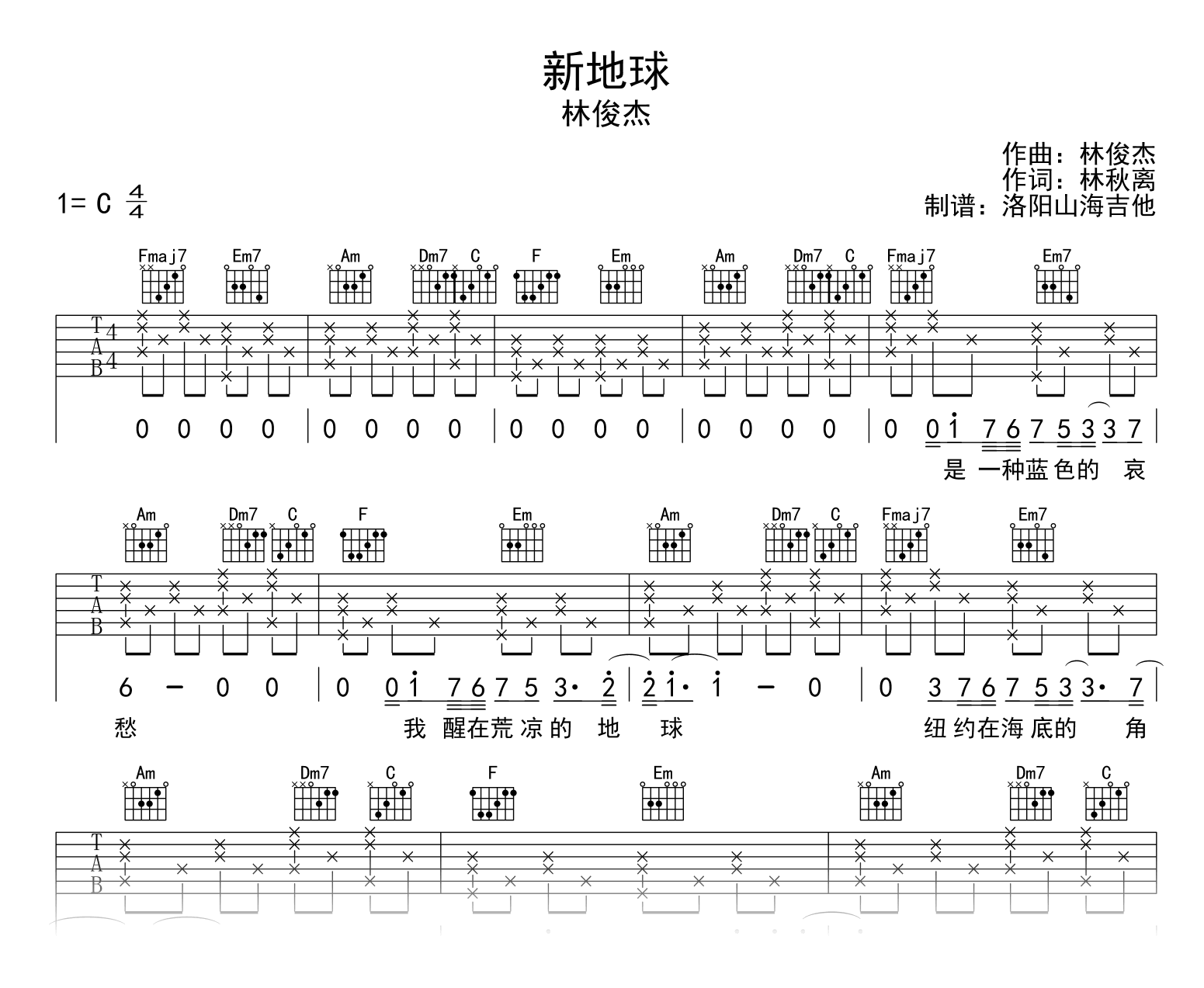 新地球吉他谱 - 林俊杰 - C调吉他弹唱谱