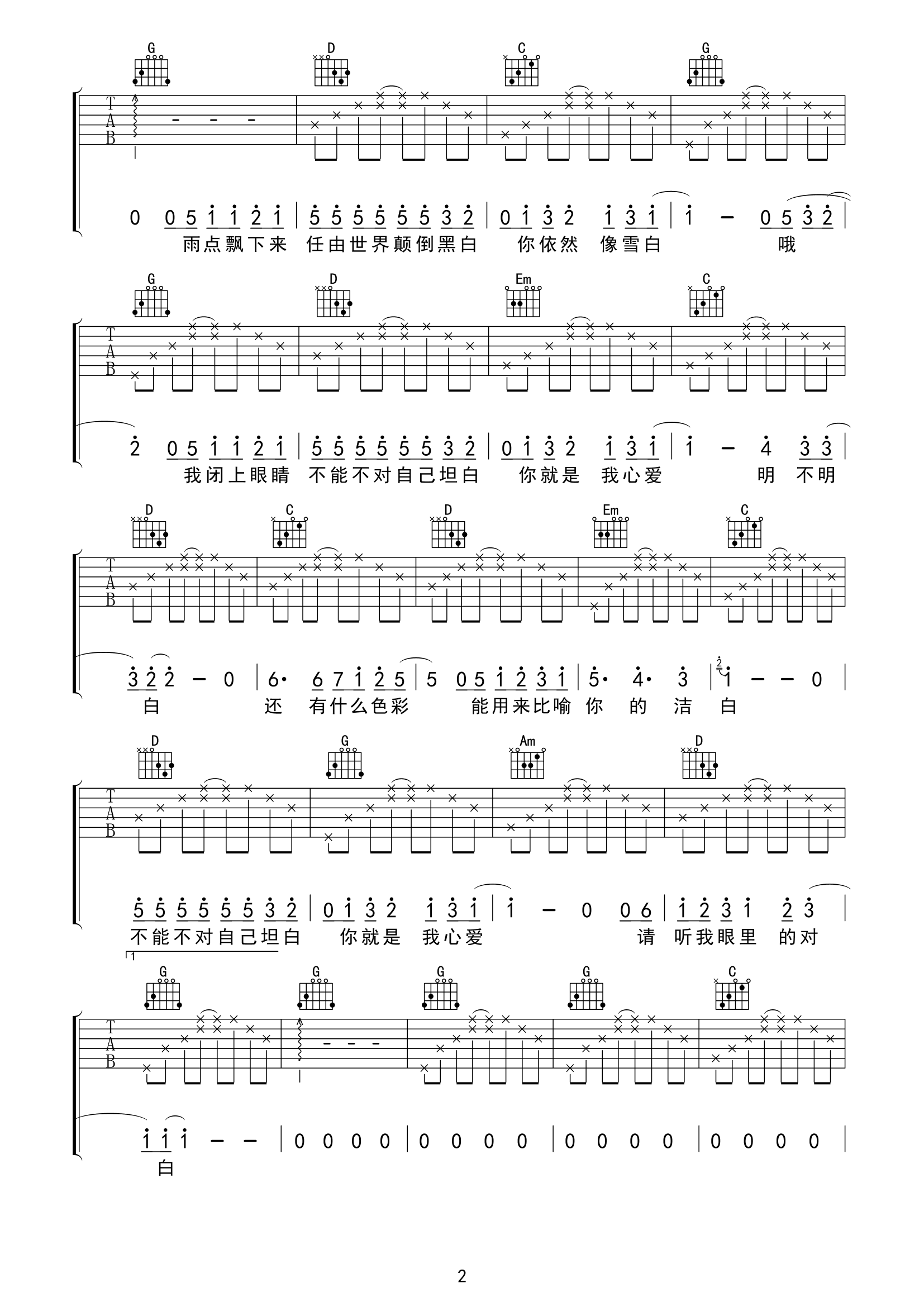 白吉他谱 - 吴奇隆 - 吉他弹唱谱