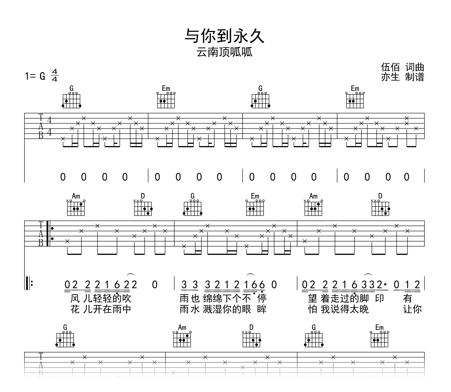 与你到永久吉他谱 - 云南顶呱呱 - G调吉他弹唱谱