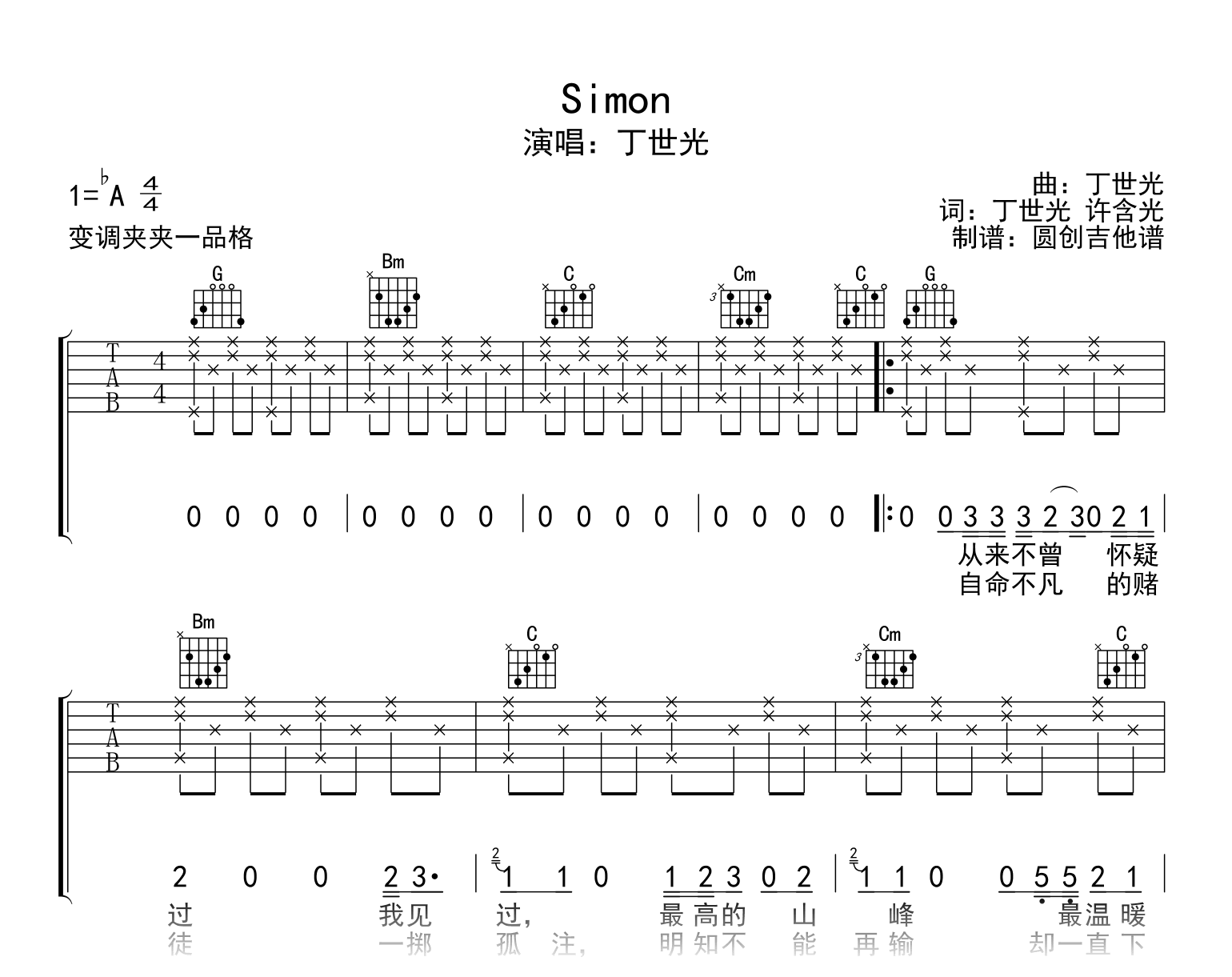 Simon吉他谱 - 丁世光 - G调吉他弹唱谱