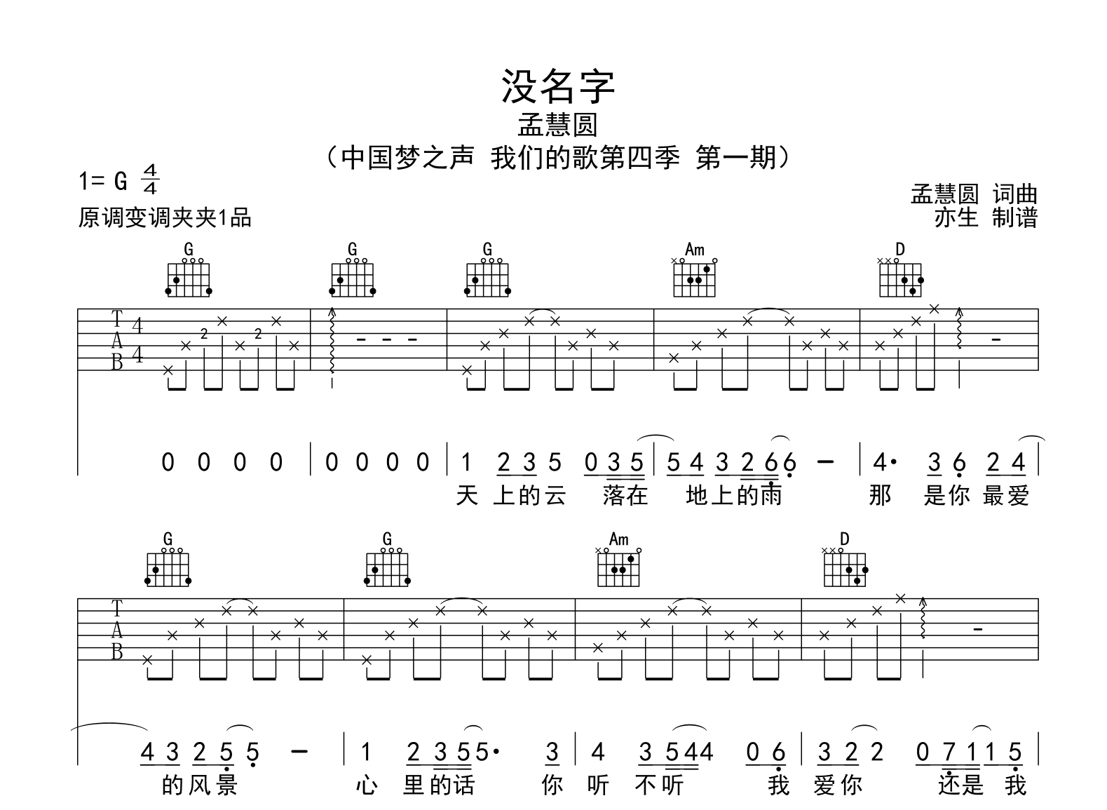 没名字吉他谱 - 孟慧圆 - G调吉他弹唱谱