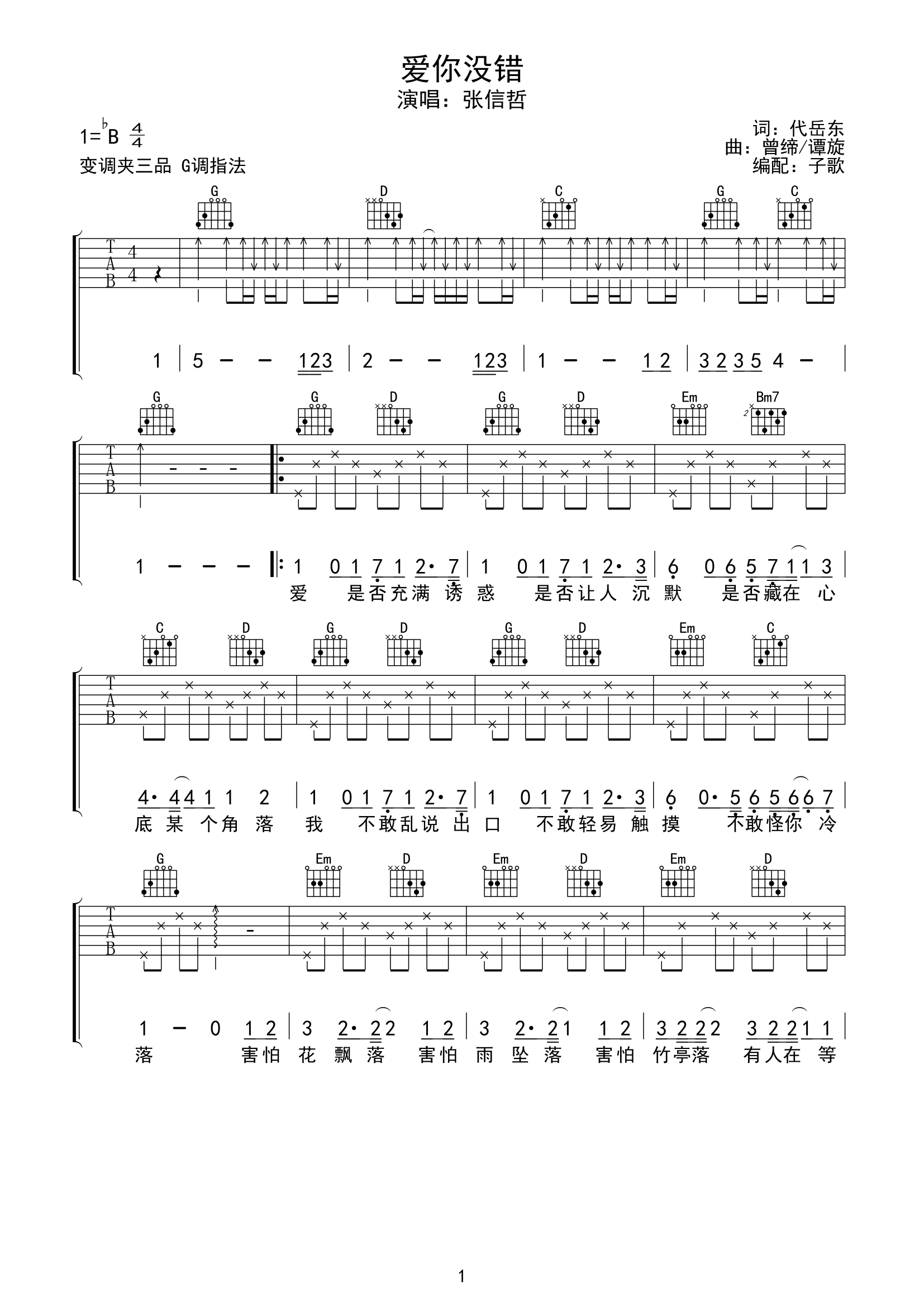 当前位置:琴谱网>吉他弹唱>爱你没错