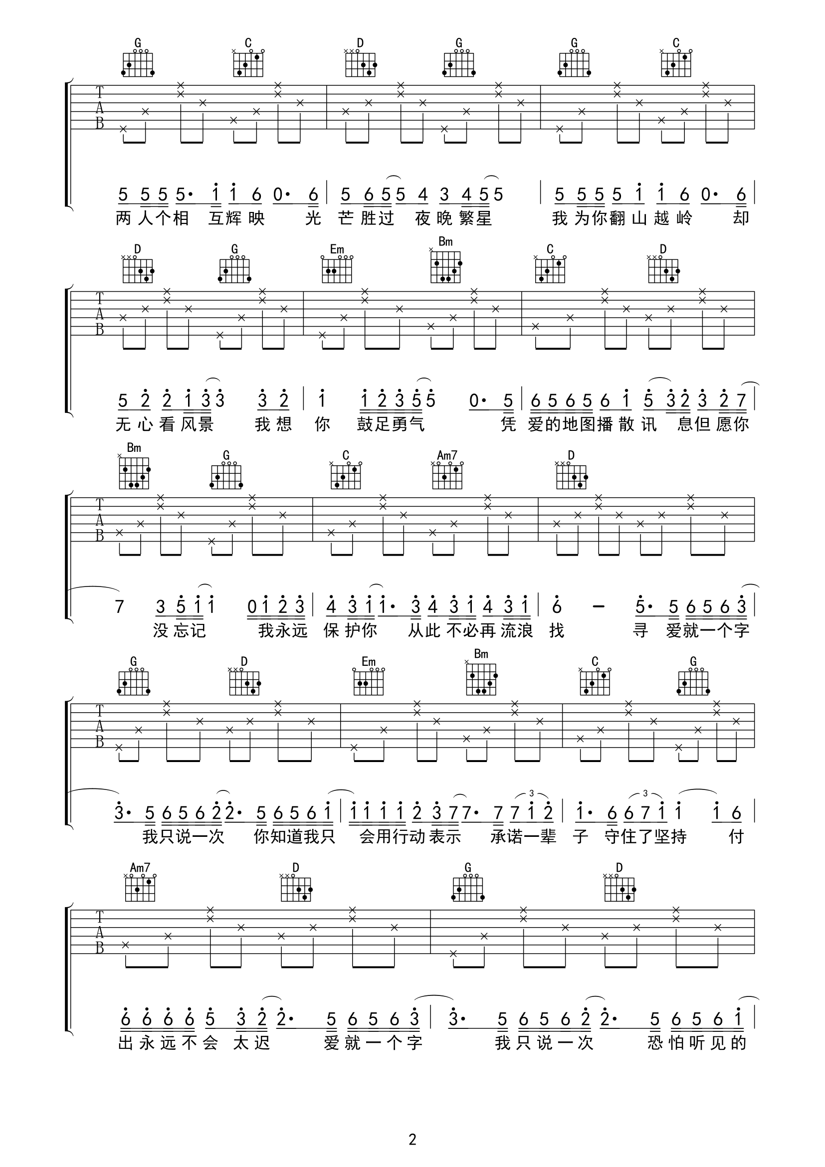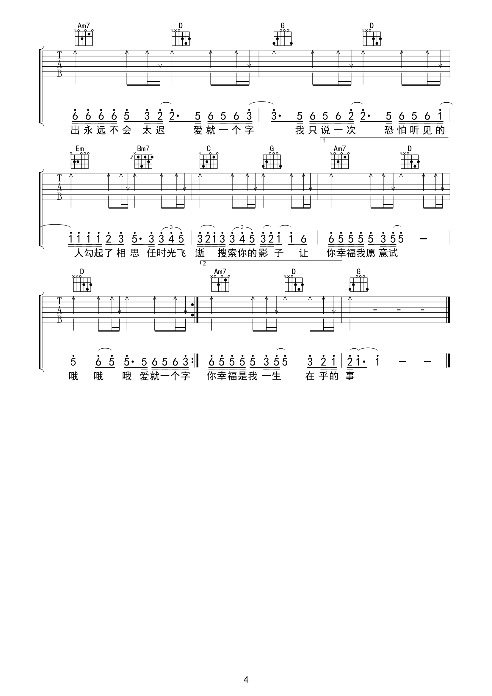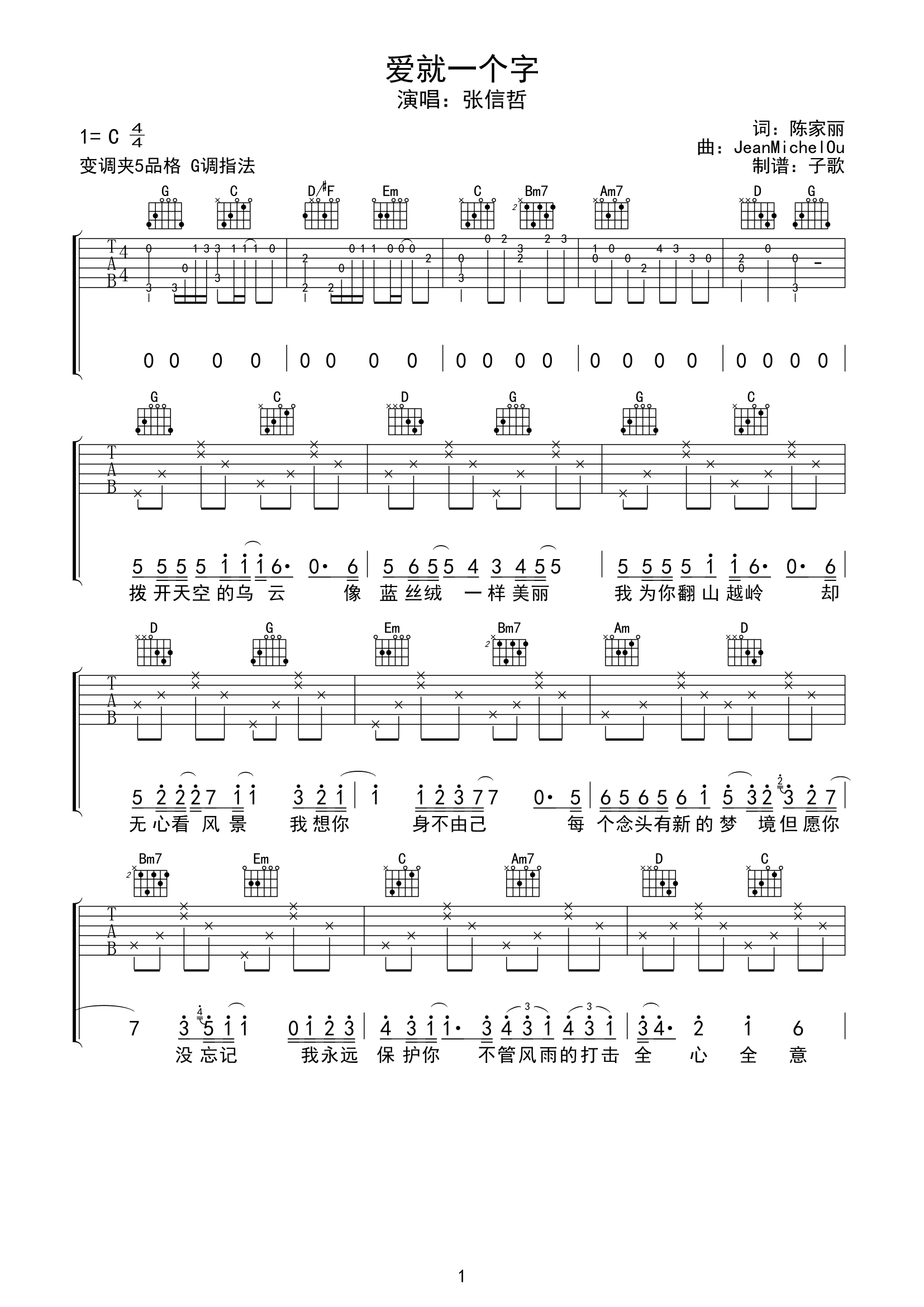 爱就一个字吉他谱 - 张信哲演唱的 - 吉他弹唱谱