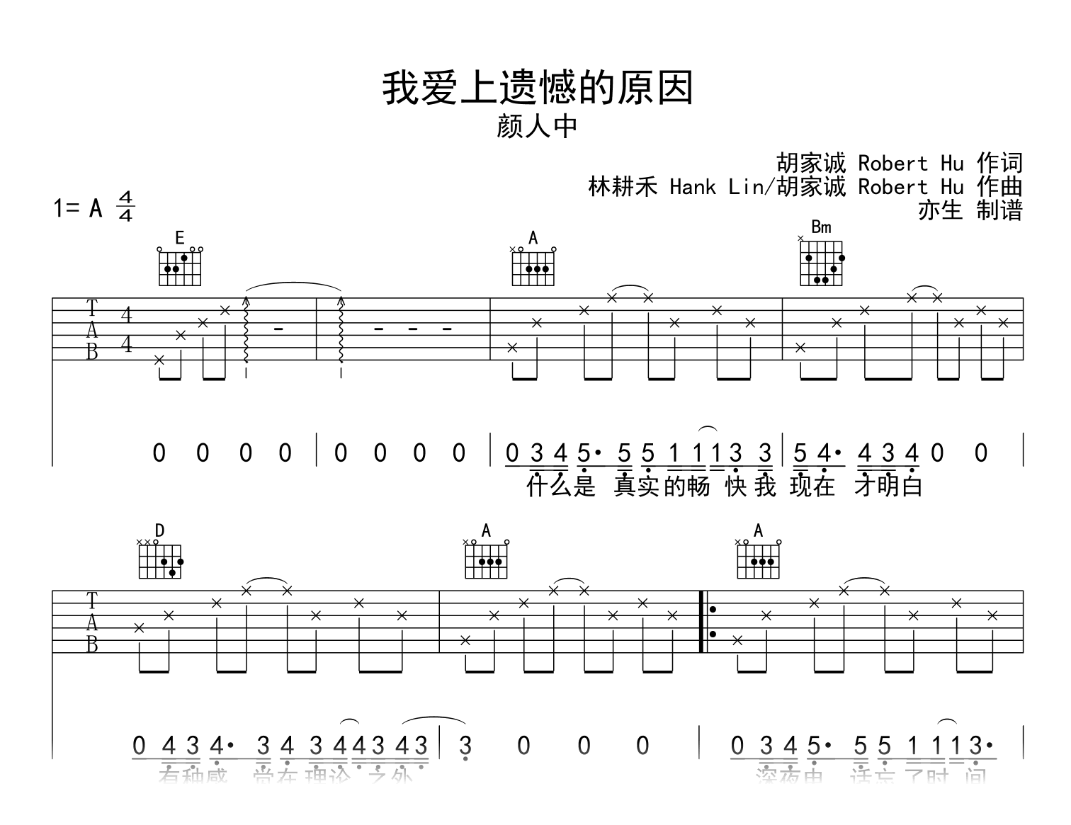 我爱上遗憾的原因吉他谱 - 颜人中 - 吉他弹唱谱