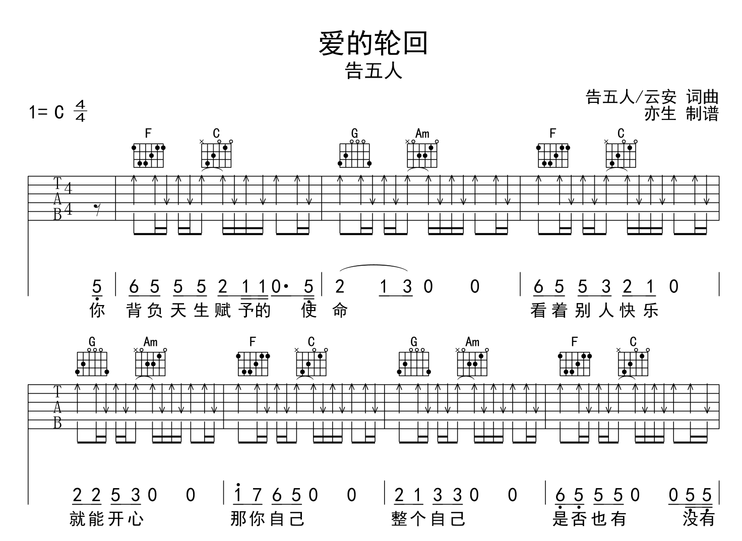 爱的轮回吉他谱 - 告五人 - C调吉他弹唱谱