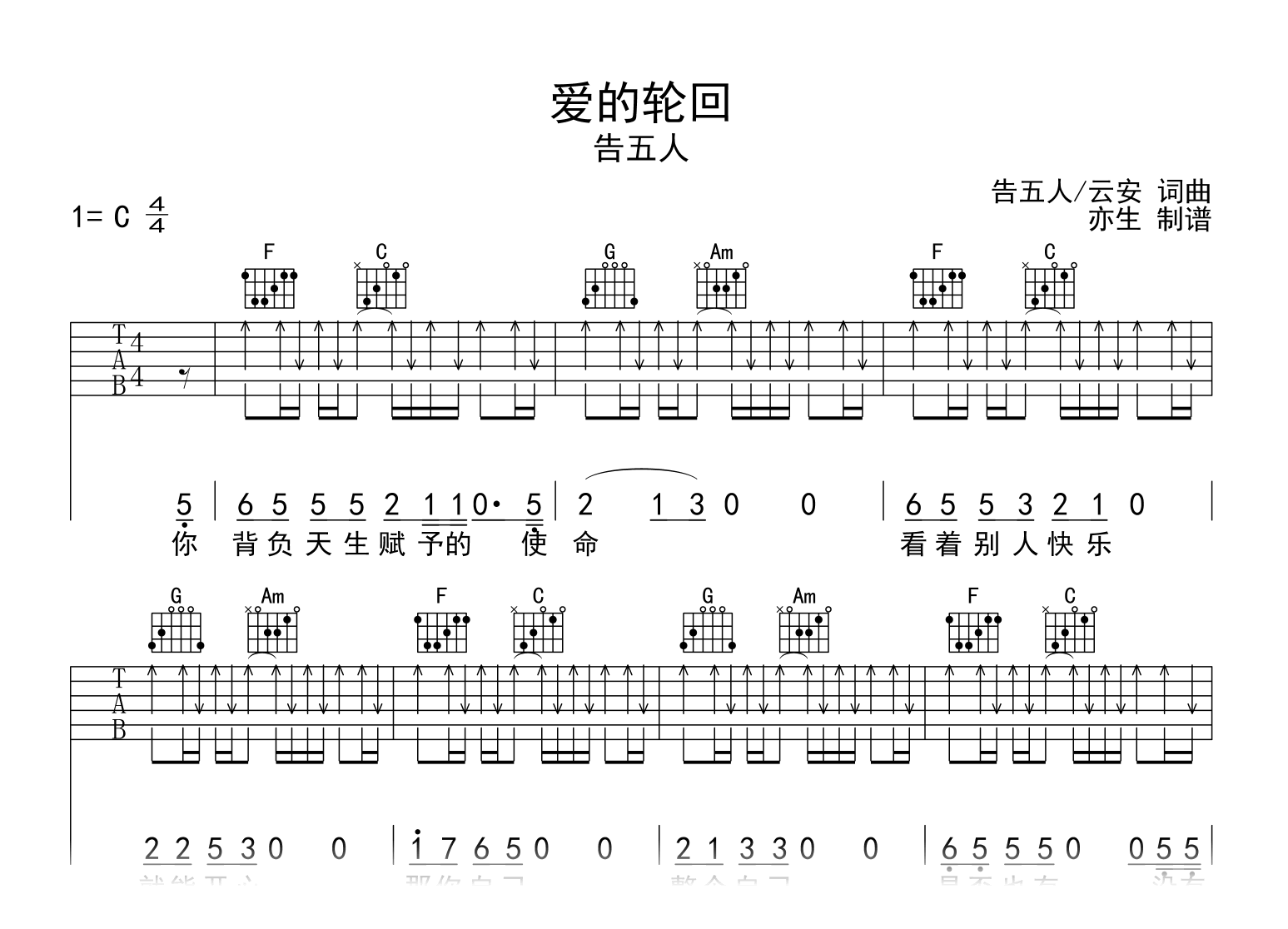 爱的轮回吉他谱 - 告五人 - C调吉他弹唱谱